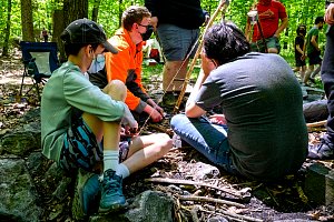 We camp at Broad Creek Memorial Scout Reservation, Camp Oest May 14-16, 2021. We had three wooded campsites. The weather was perfect for camping with nighttime temperatures in the mid 40s and highs in the 70s. This was a patrol cooking trip and the Scouts appeared to eat quite well. Two Scouts cooked their PASS meals on Saturday and the Scouts who ate those meals had quite the feast!The main activities for the weekend was a shelter/fort building competition followed by a game of capture the flag using the shelters/forts and a fire building competition. Parents transported their sons once again to the camp because of Covid-19 protocols and everyone wore mask throughout the weekend. Scouts were allowed to bring chairs so they could keep separated more easily and we had multiple campfires on Saturday instead of one big gathering.