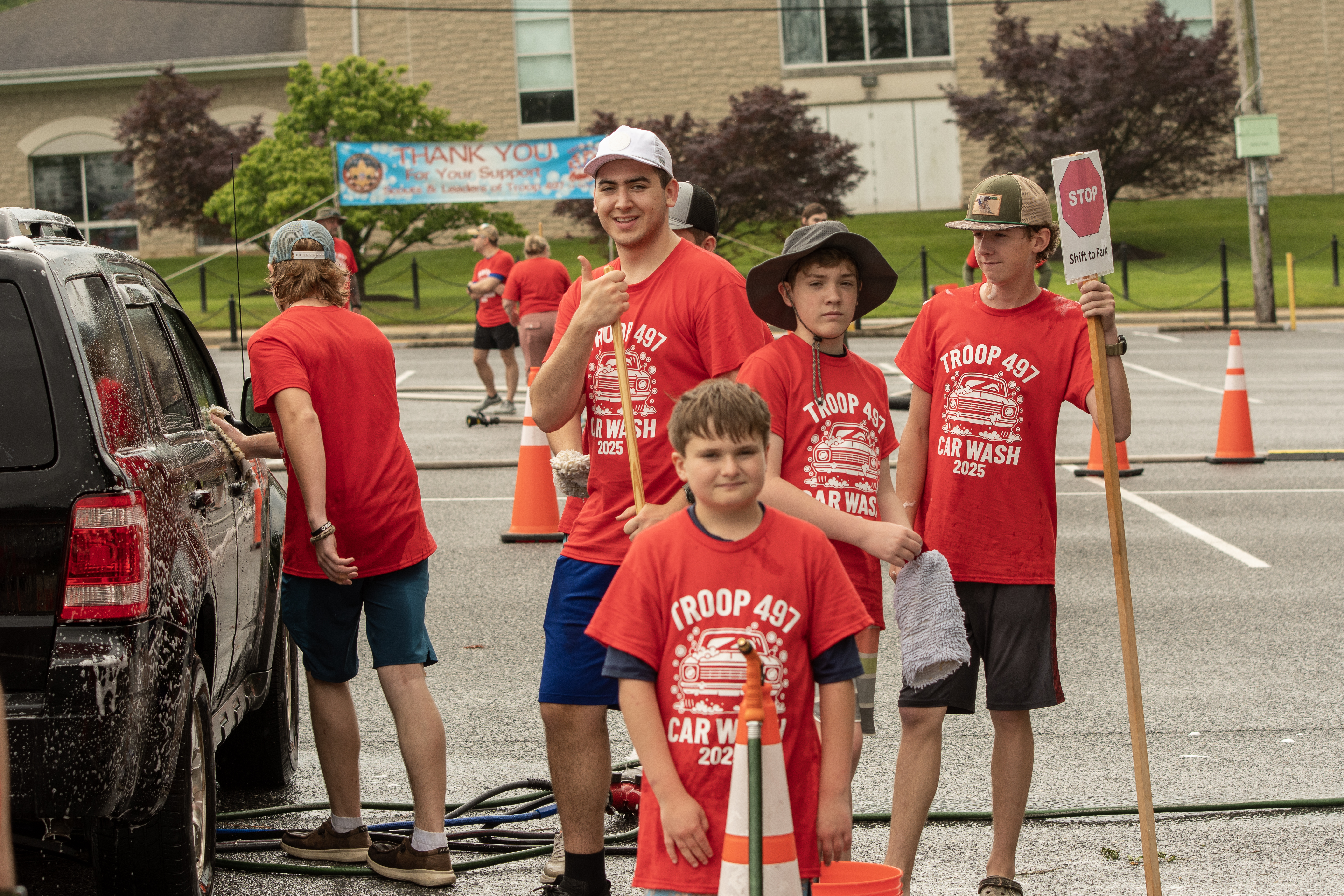 On 7 June 2025 Troop 497 held their Annual Car Wash in the St Joseph Parish Center parking lot. The boys washed 241 cars.Click on a photograph to see the large, high quality version or right click and select the menu item to save it to your disk. Contact the photographers for even higher resolution images. Email Webmaster if you would like to contribute additional photographs.