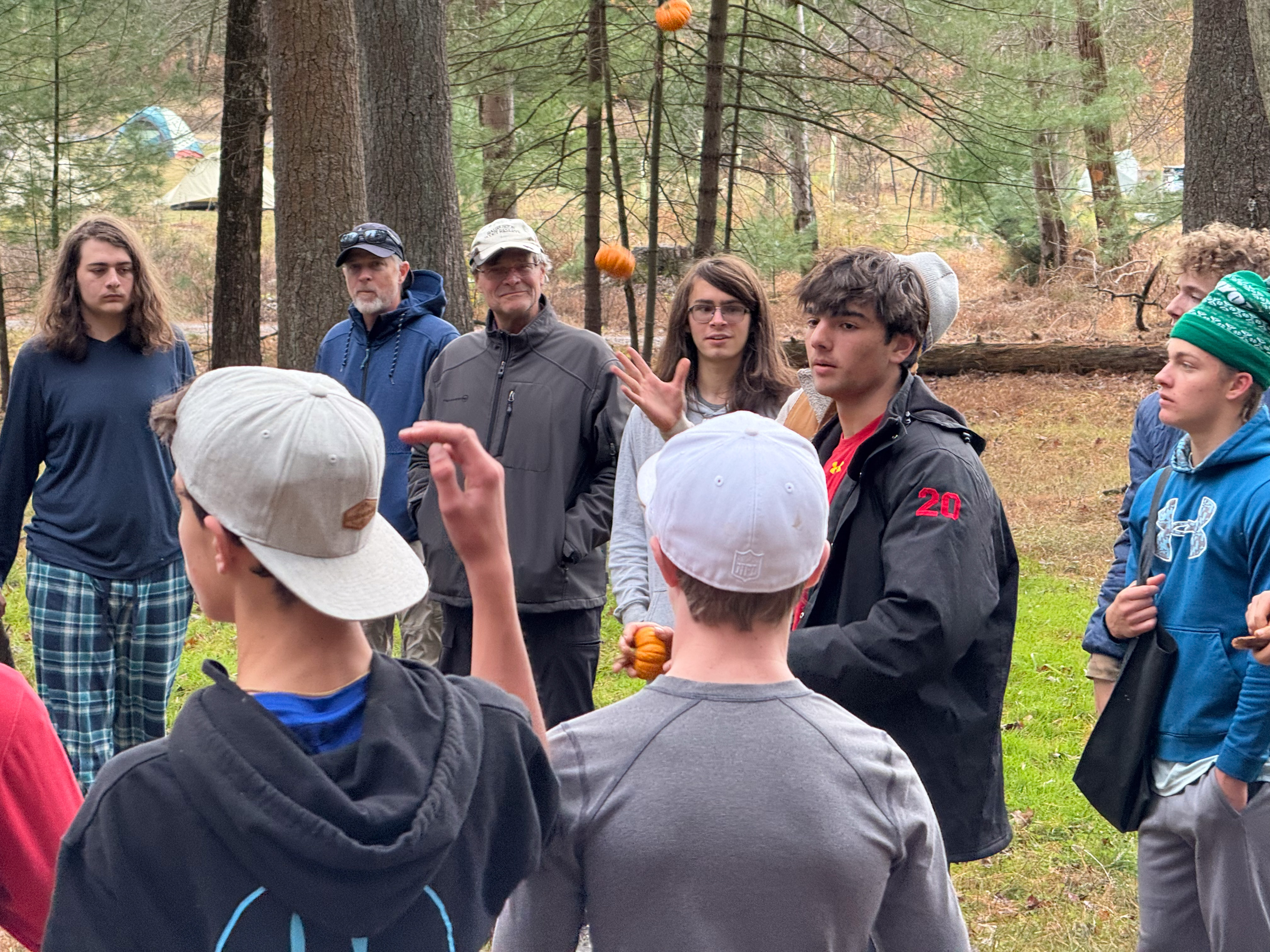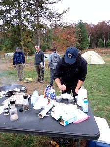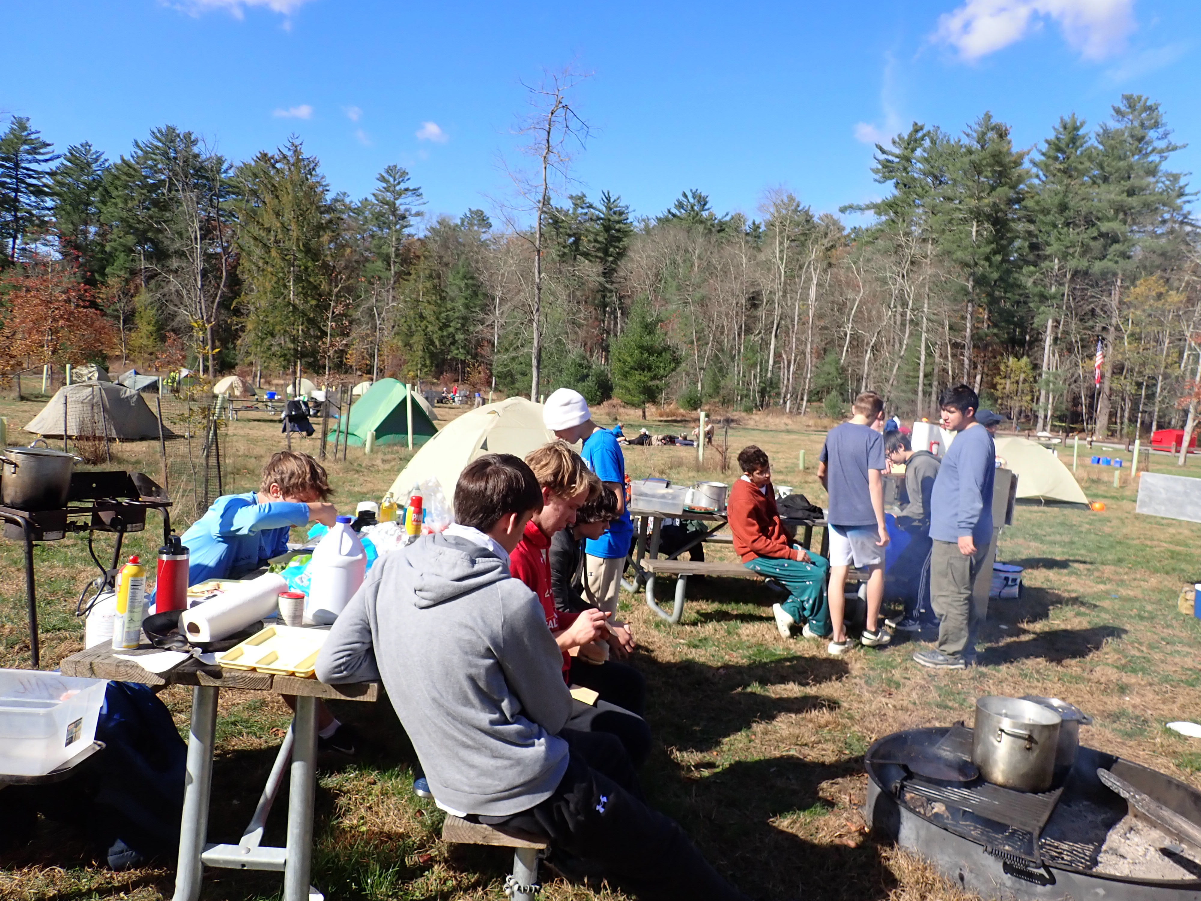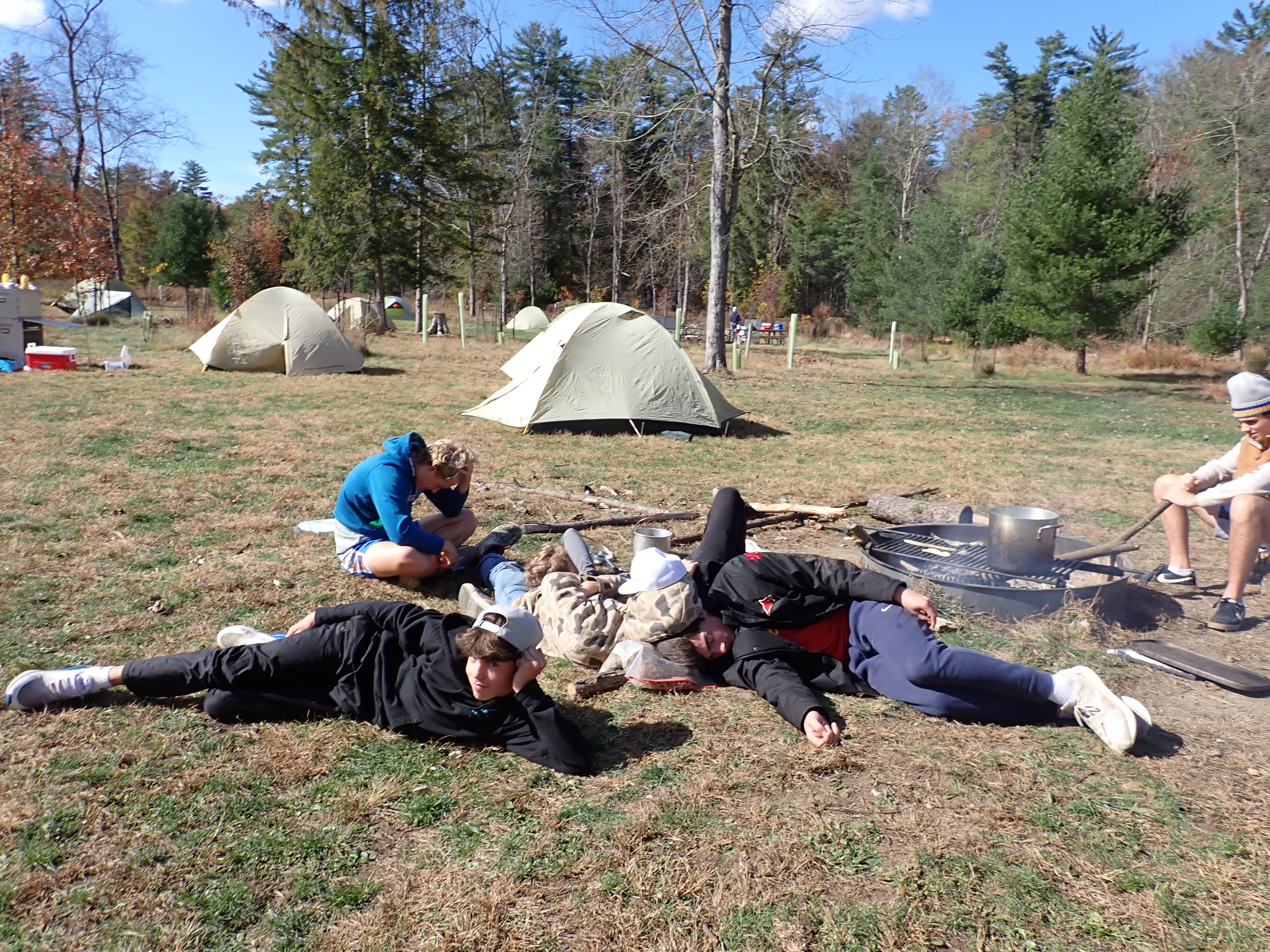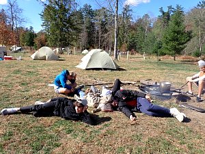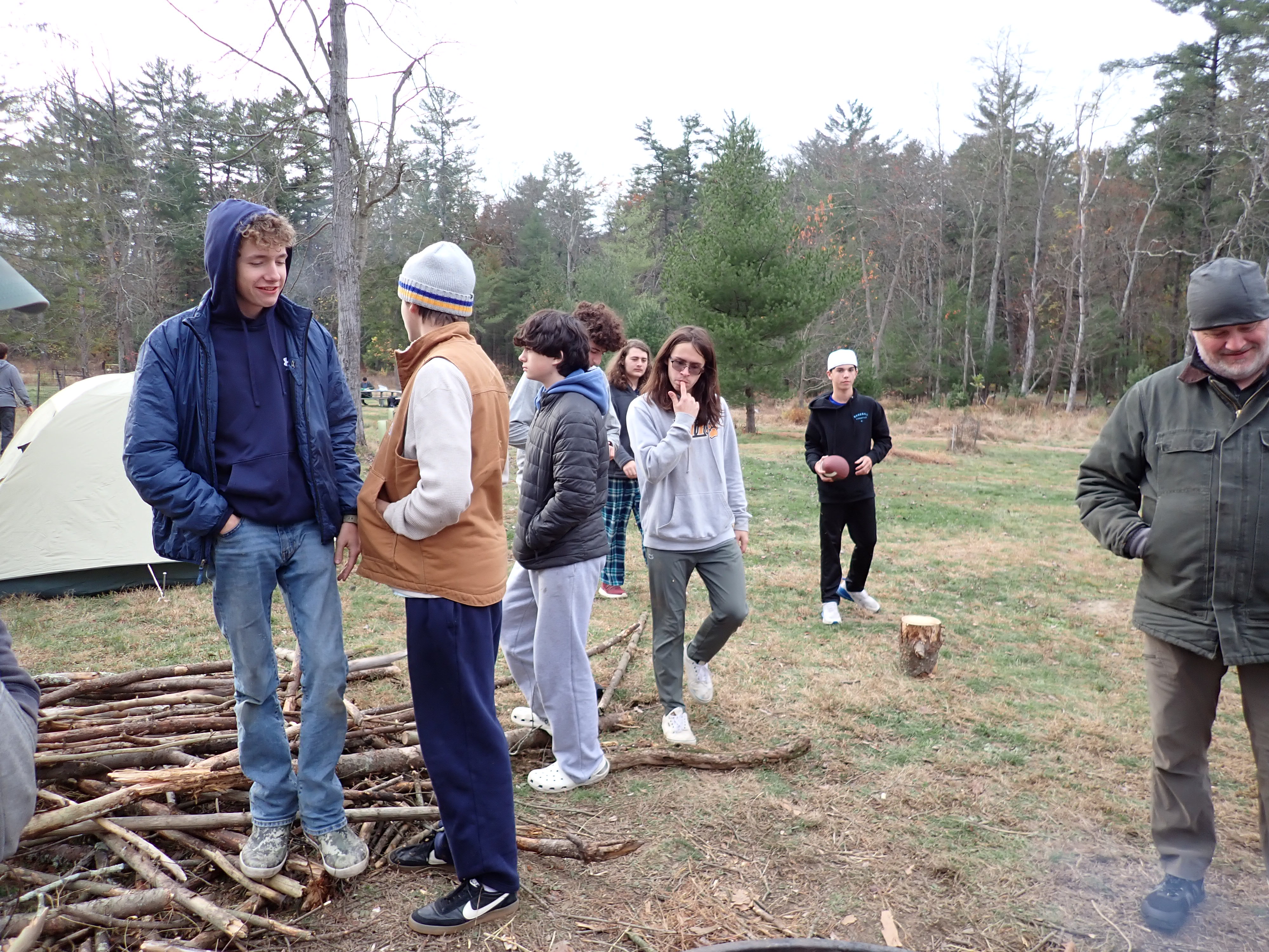 On 24-26 October 2025 we camped at Pine Grove Furnace State Park in Gardners, PA in sites A, B, and C.The weather both Saturday and Sunday fluctuated between overcast and partially sunny throughout the day. Night time lows for both days were predicted to be in the low 30's. We were surprised when the low on Saturday morning was 25°F and even more surprised on Sunday went it went down to 24°F. The main activities on Saturday were building shelters and then using them for capture the flag games.