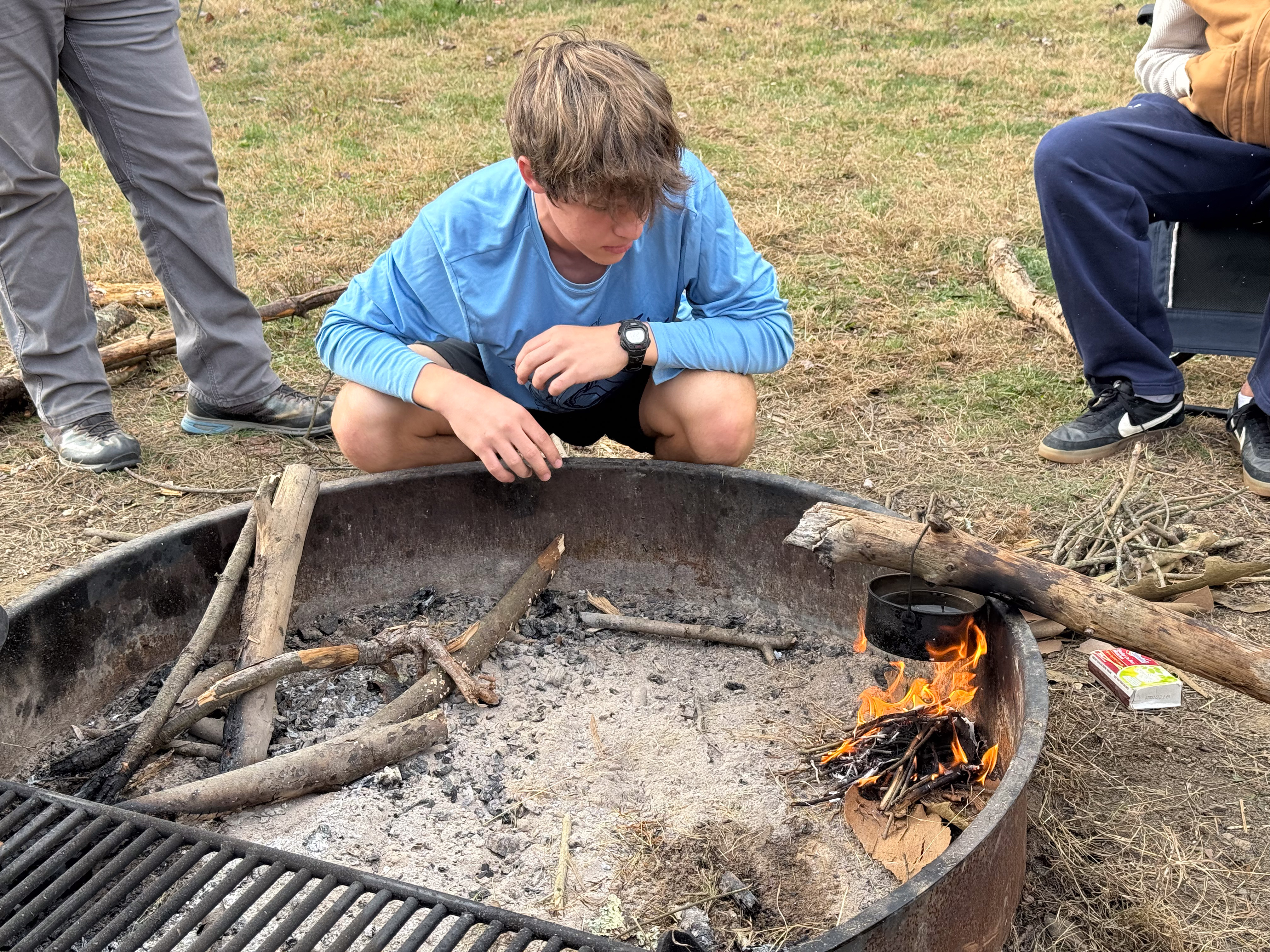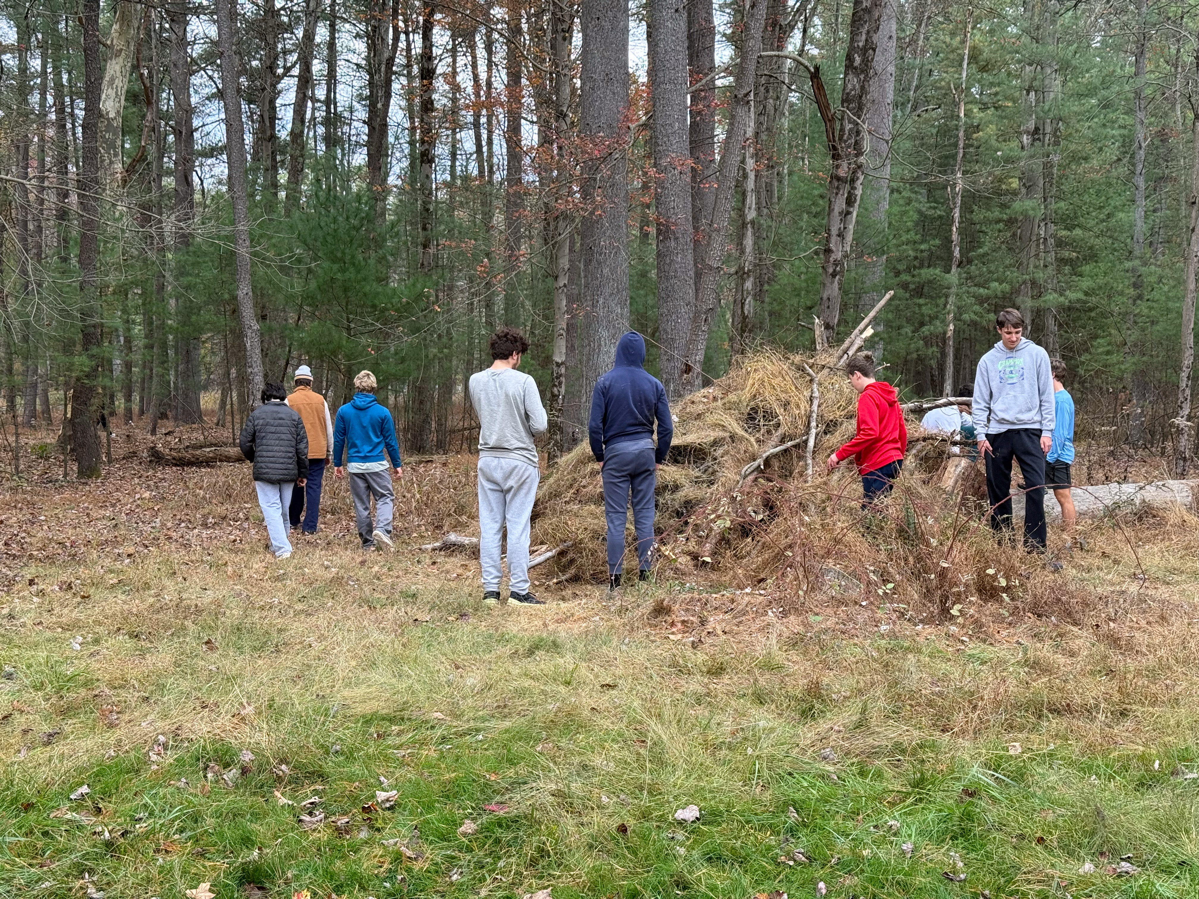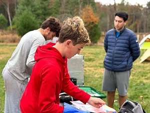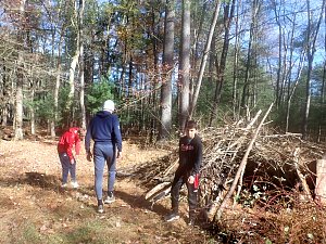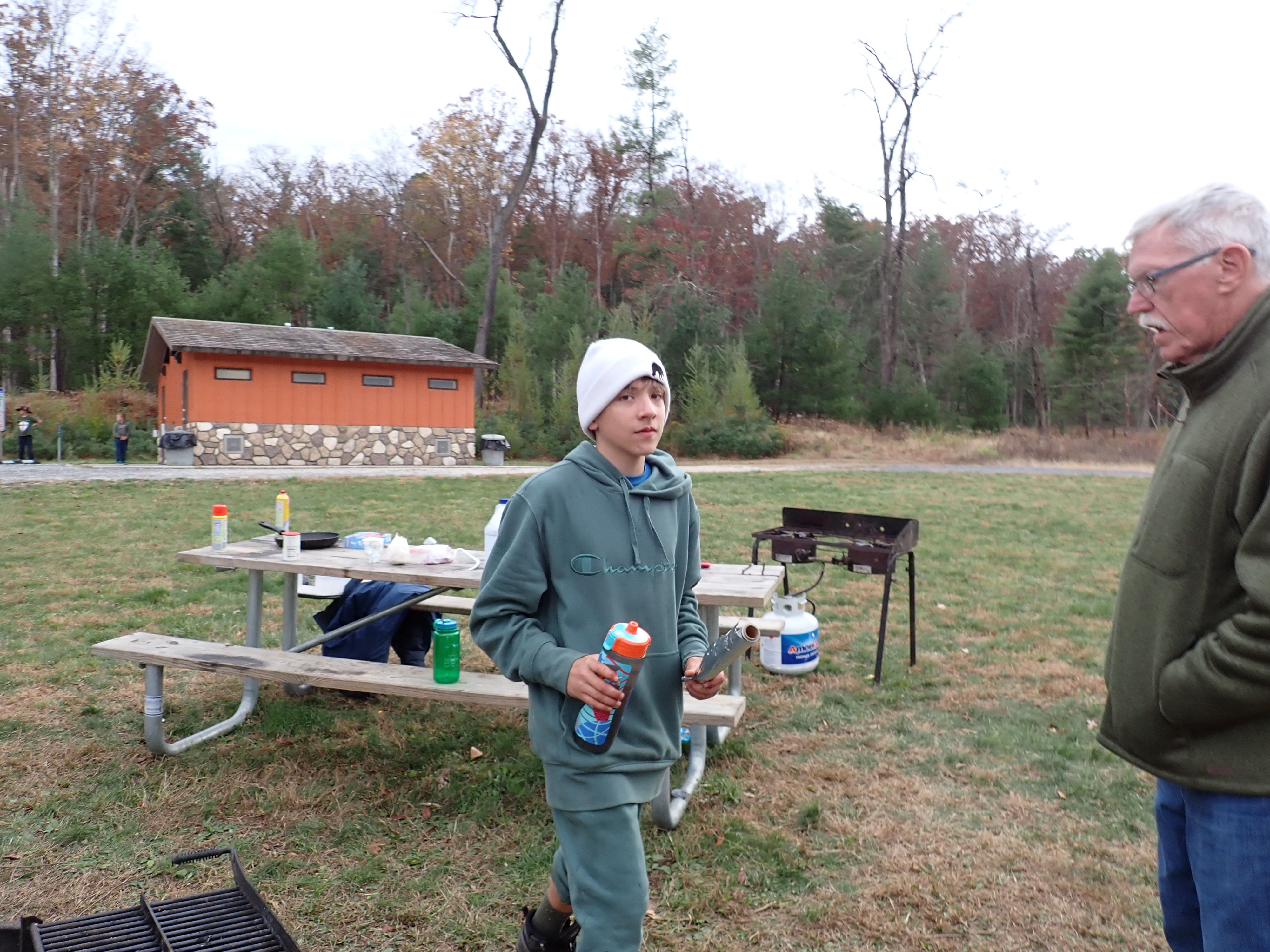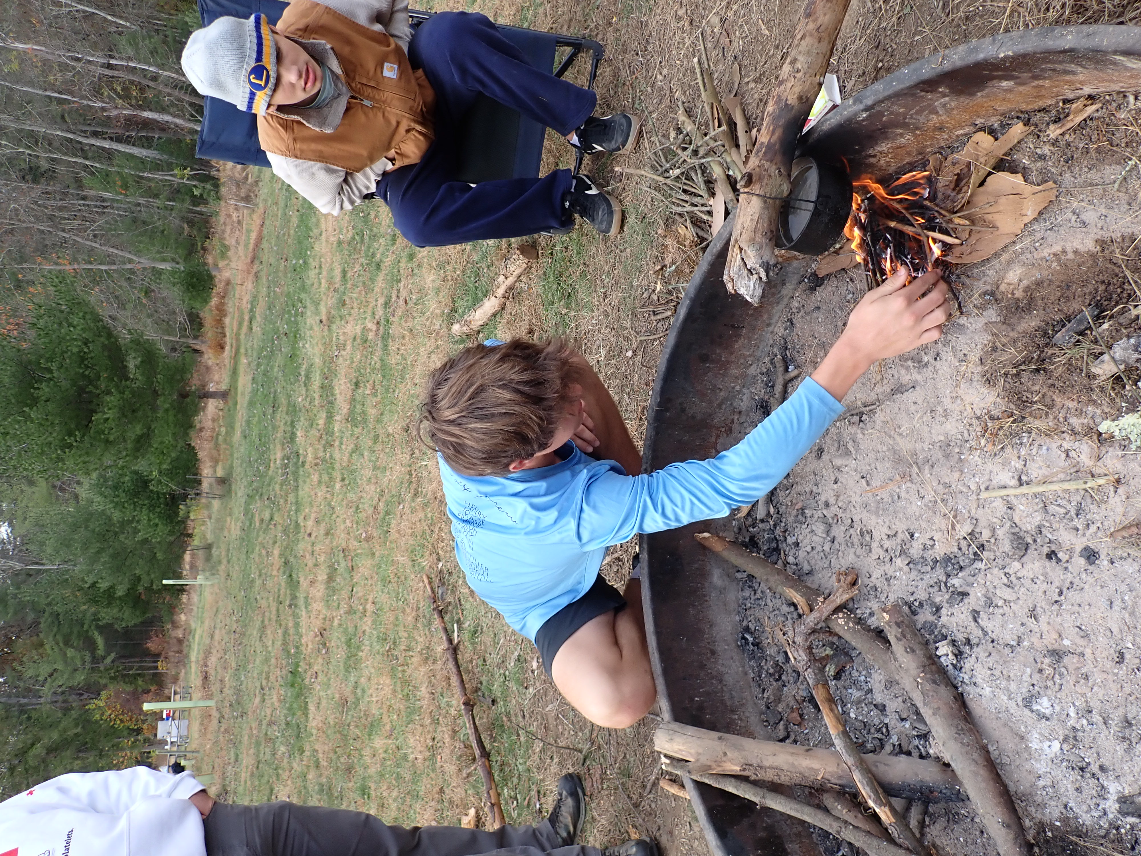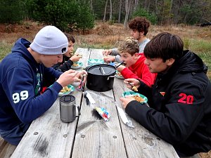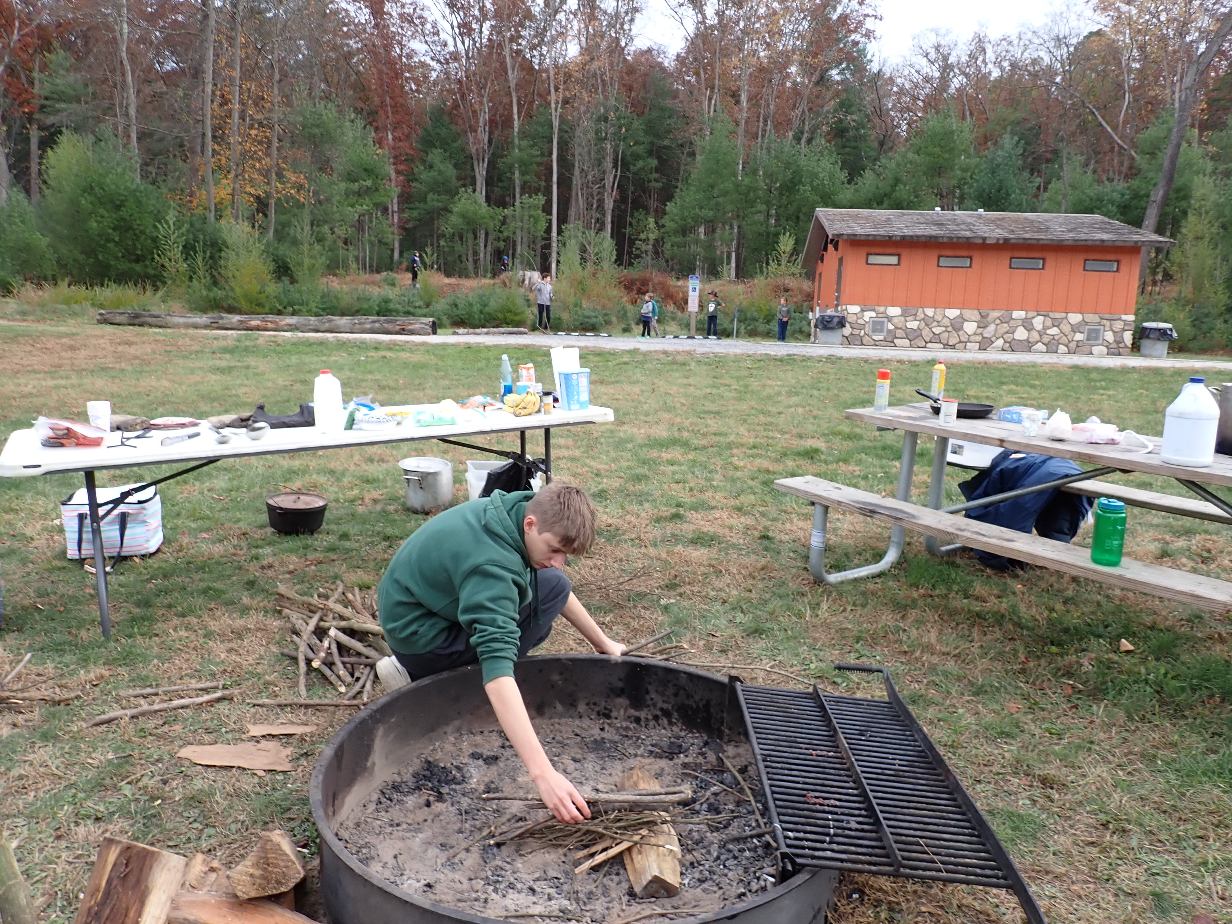 On 24-26 October 2025 we camped at Pine Grove Furnace State Park in Gardners, PA in sites A, B, and C.The weather both Saturday and Sunday fluctuated between overcast and partially sunny throughout the day. Night time lows for both days were predicted to be in the low 30's. We were surprised when the low on Saturday morning was 25°F and even more surprised on Sunday went it went down to 24°F. The main activities on Saturday were building shelters and then using them for capture the flag games.