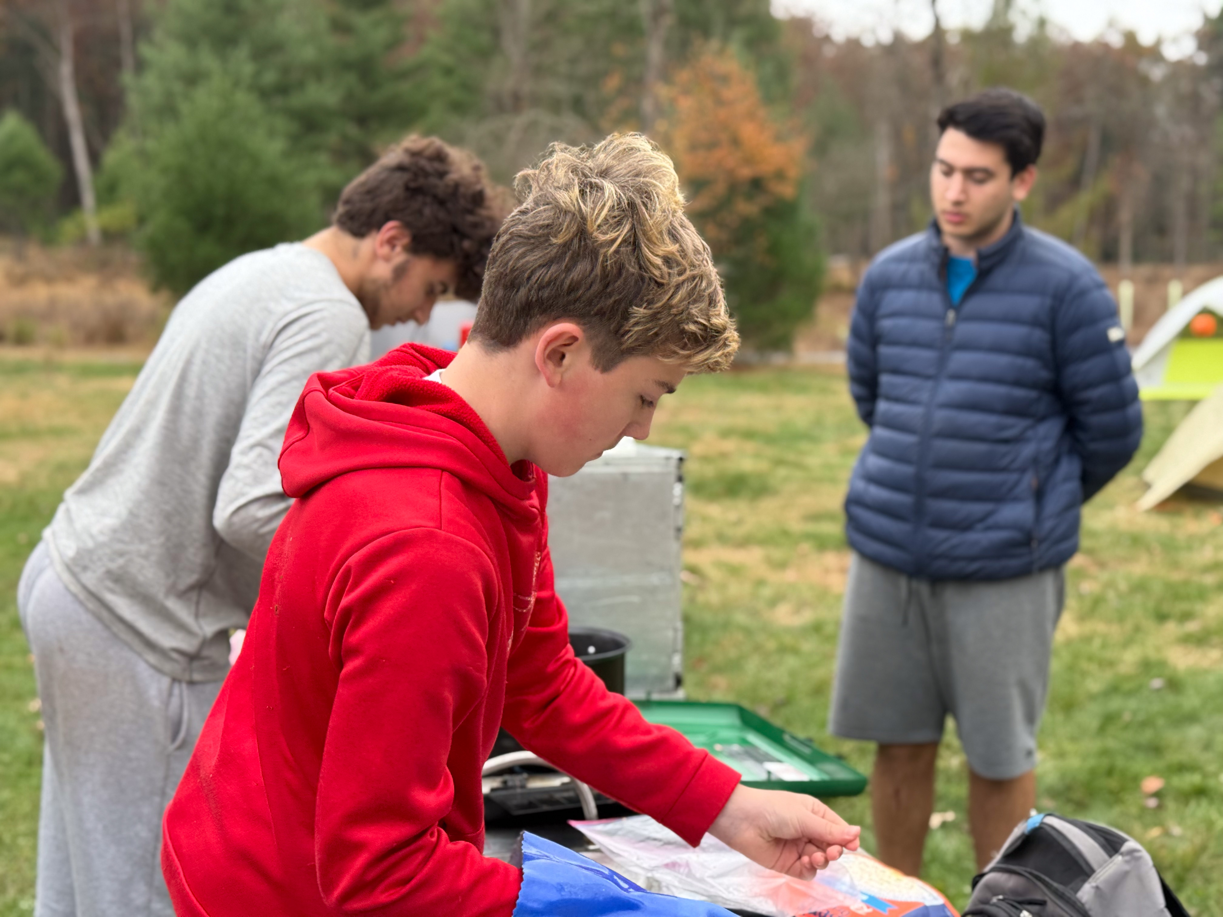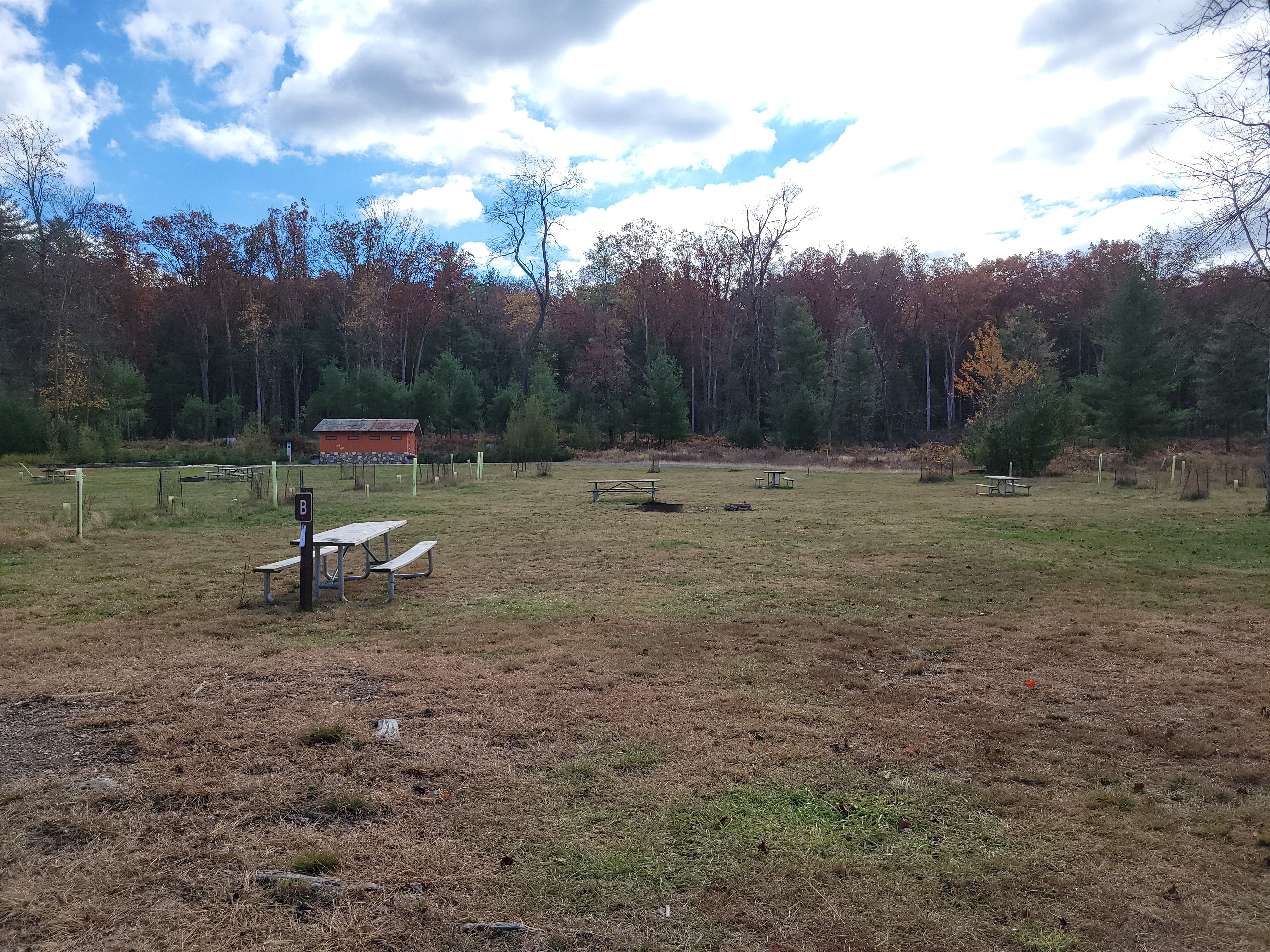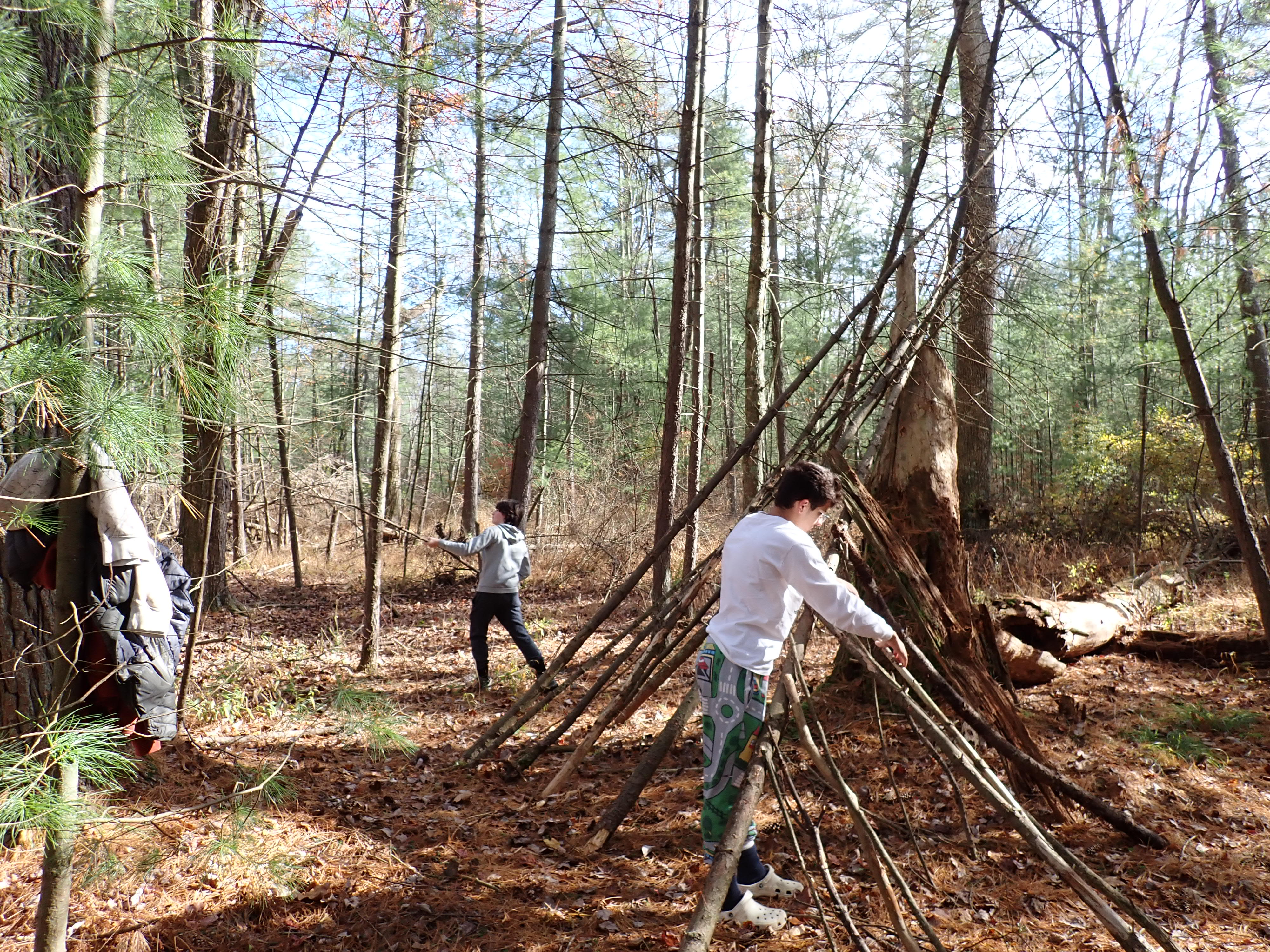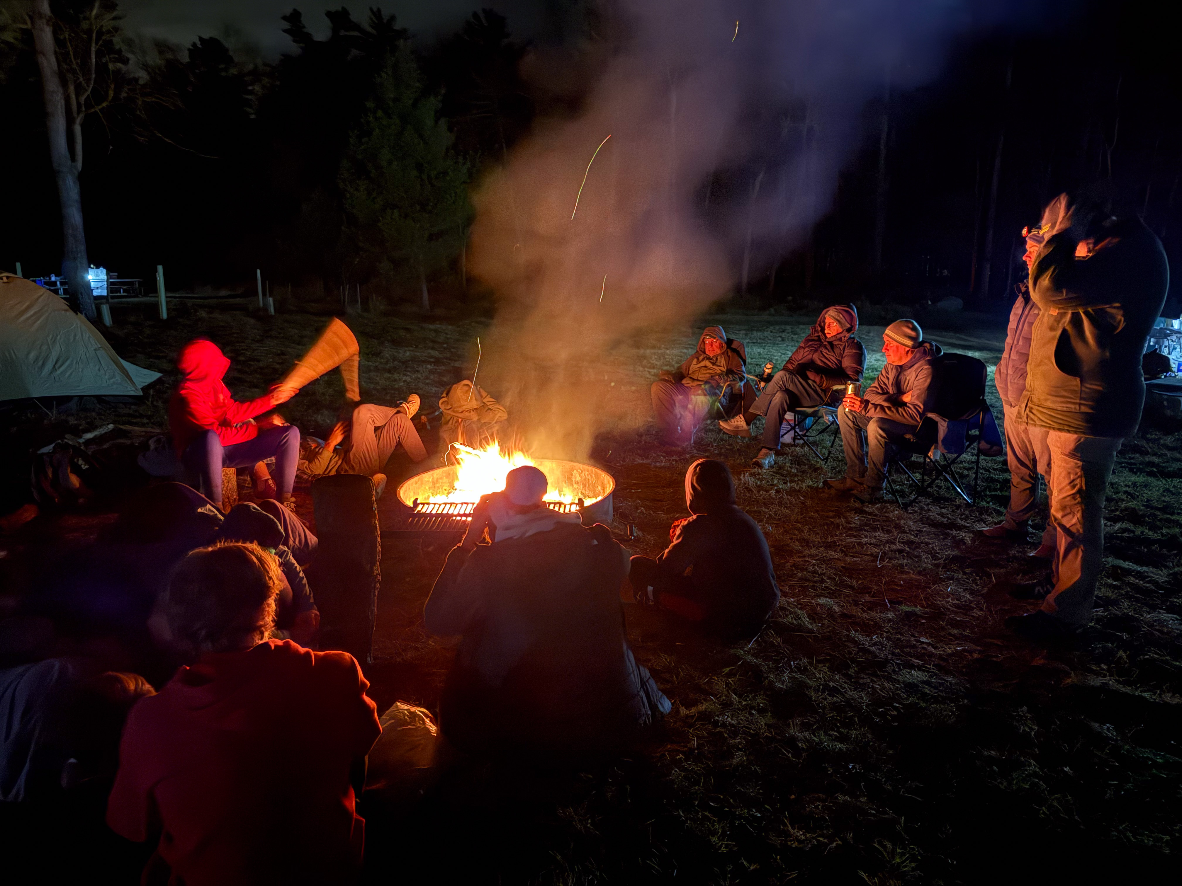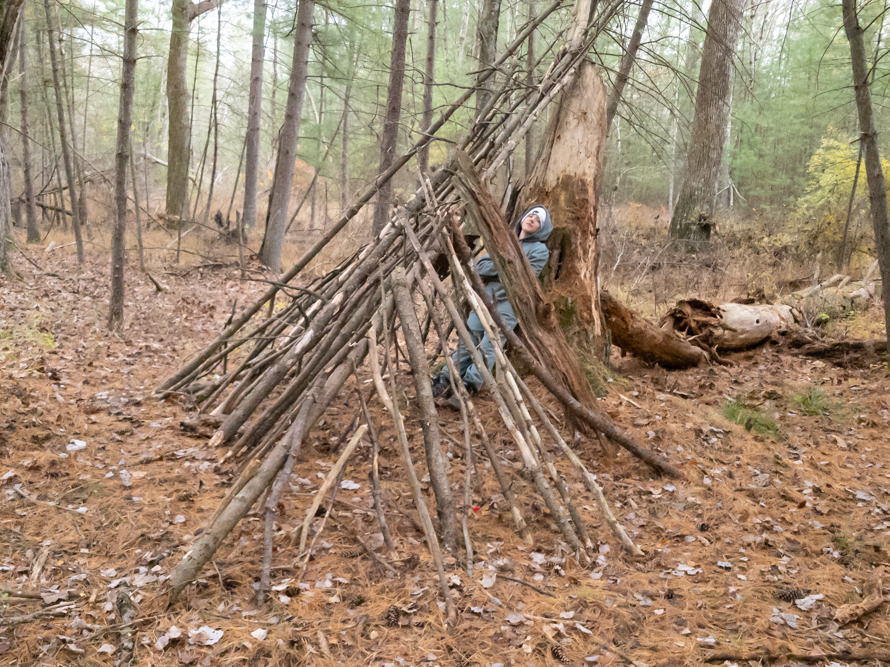 On 24-26 October 2025 we camped at Pine Grove Furnace State Park in Gardners, PA in sites A, B, and C.The weather both Saturday and Sunday fluctuated between overcast and partially sunny throughout the day. Night time lows for both days were predicted to be in the low 30's. We were surprised when the low on Saturday morning was 25°F and even more surprised on Sunday went it went down to 24°F. The main activities on Saturday were building shelters and then using them for capture the flag games.
