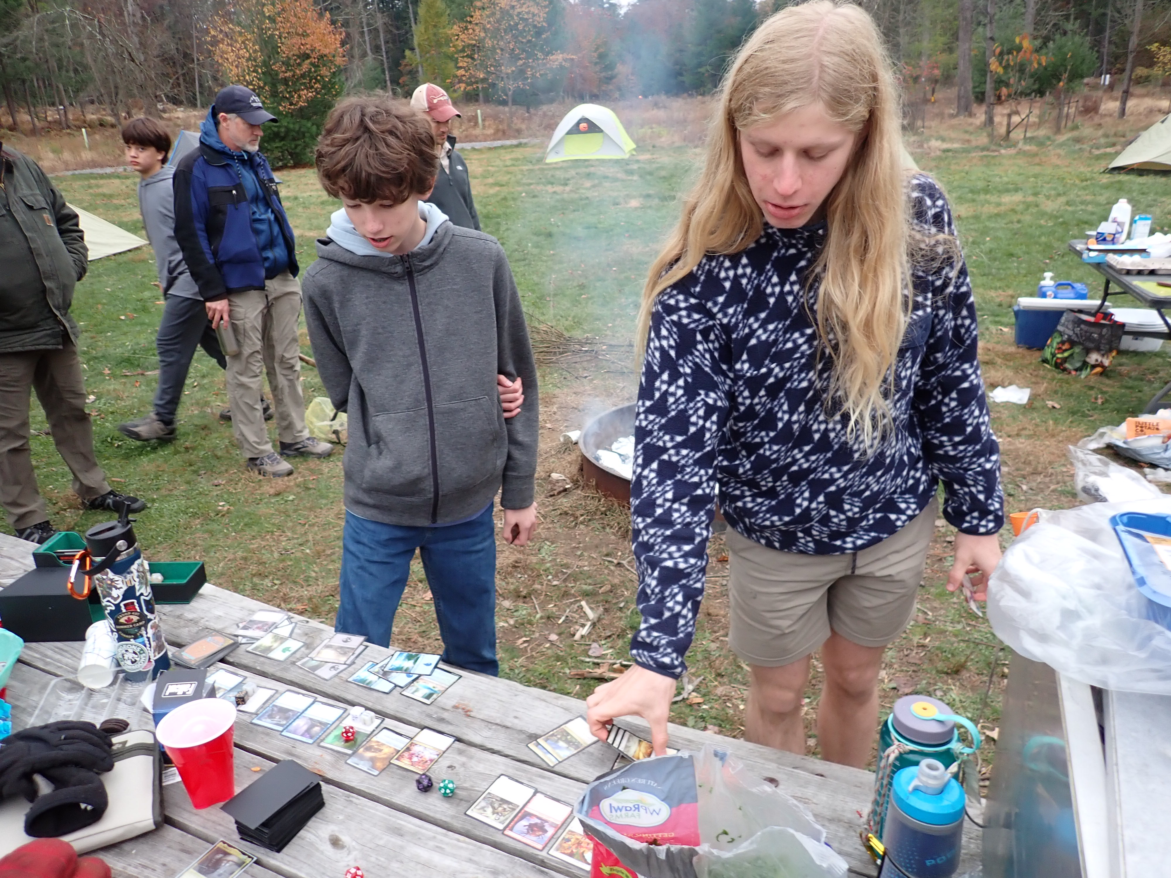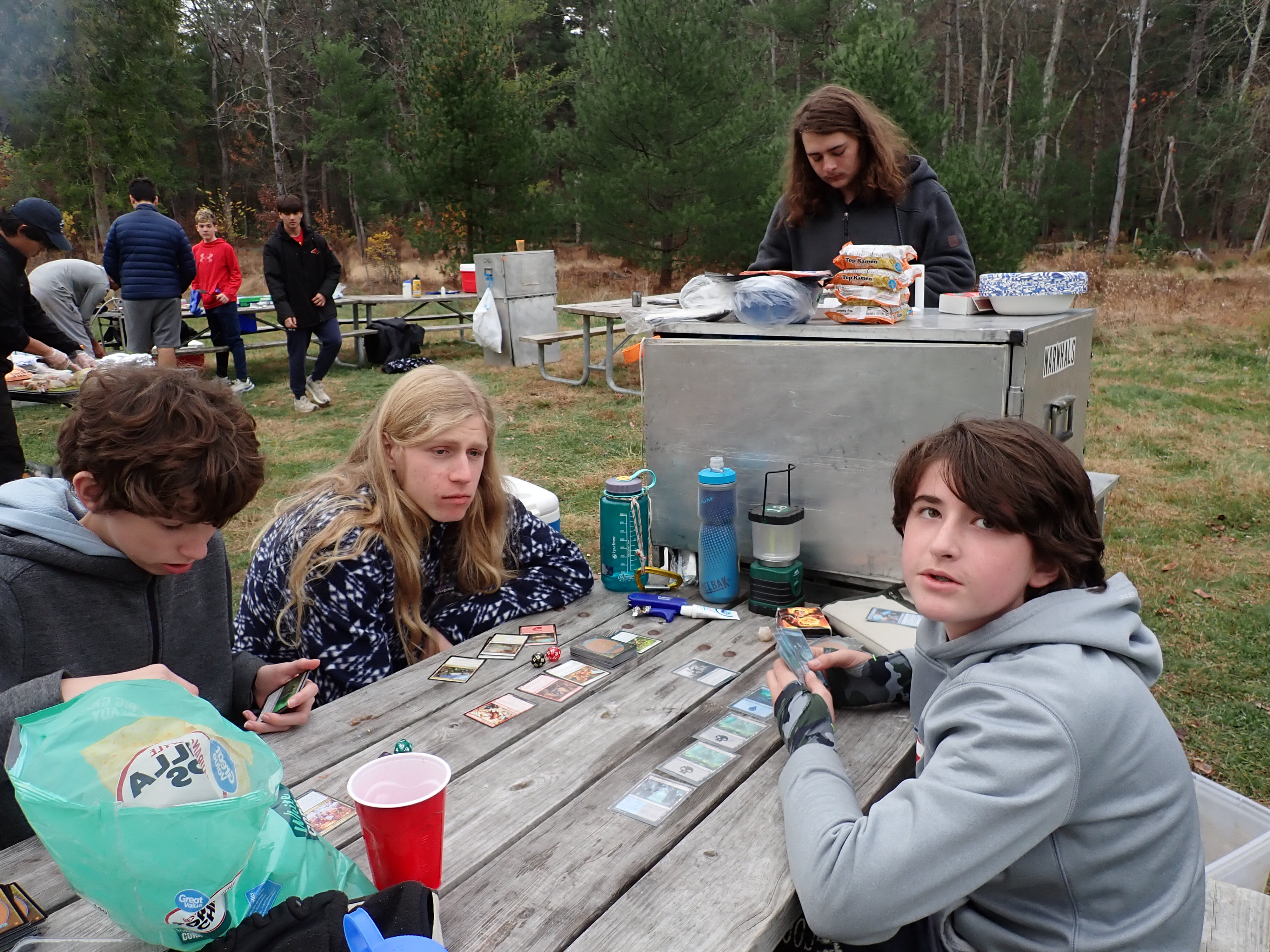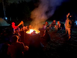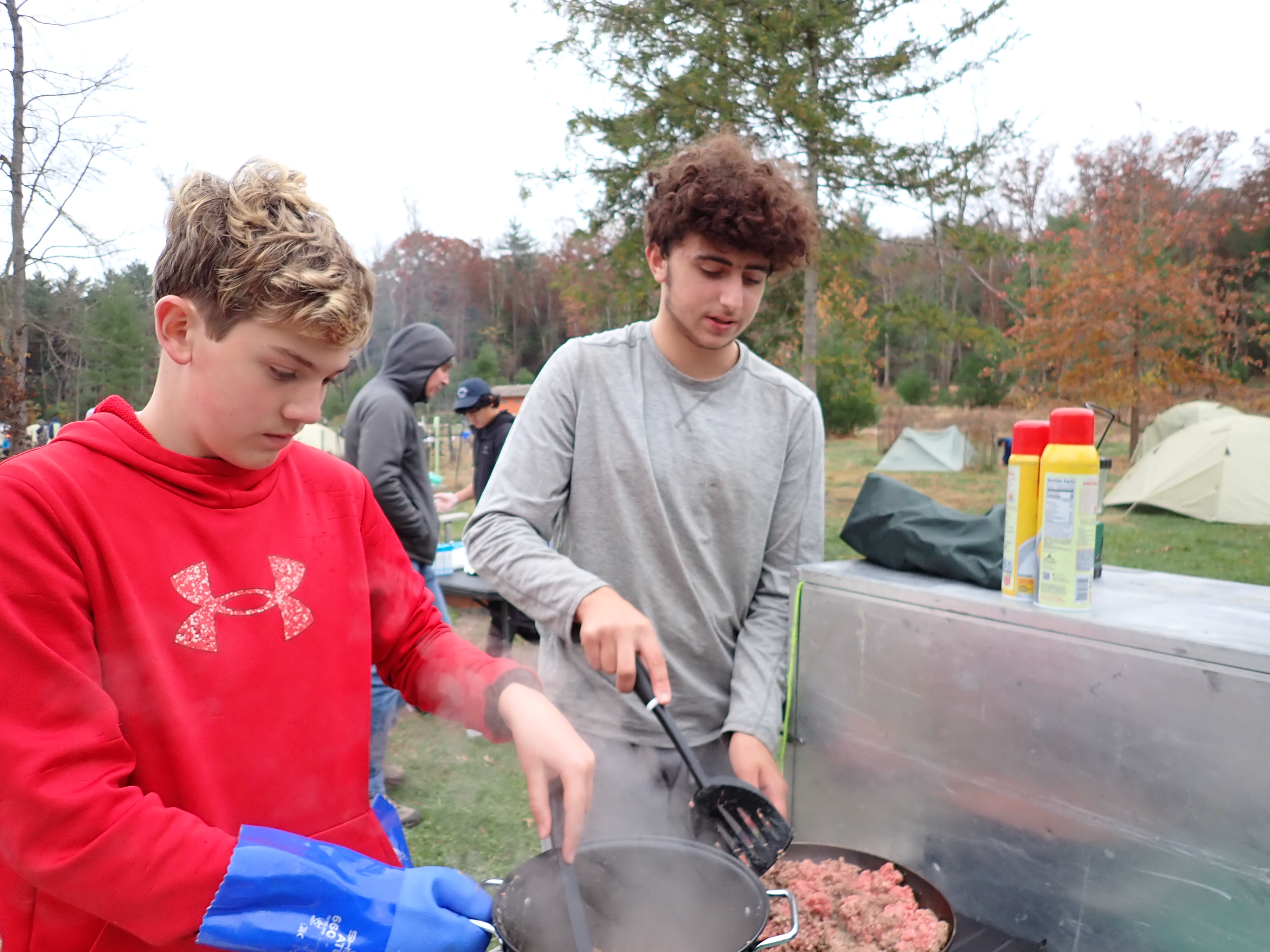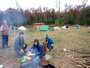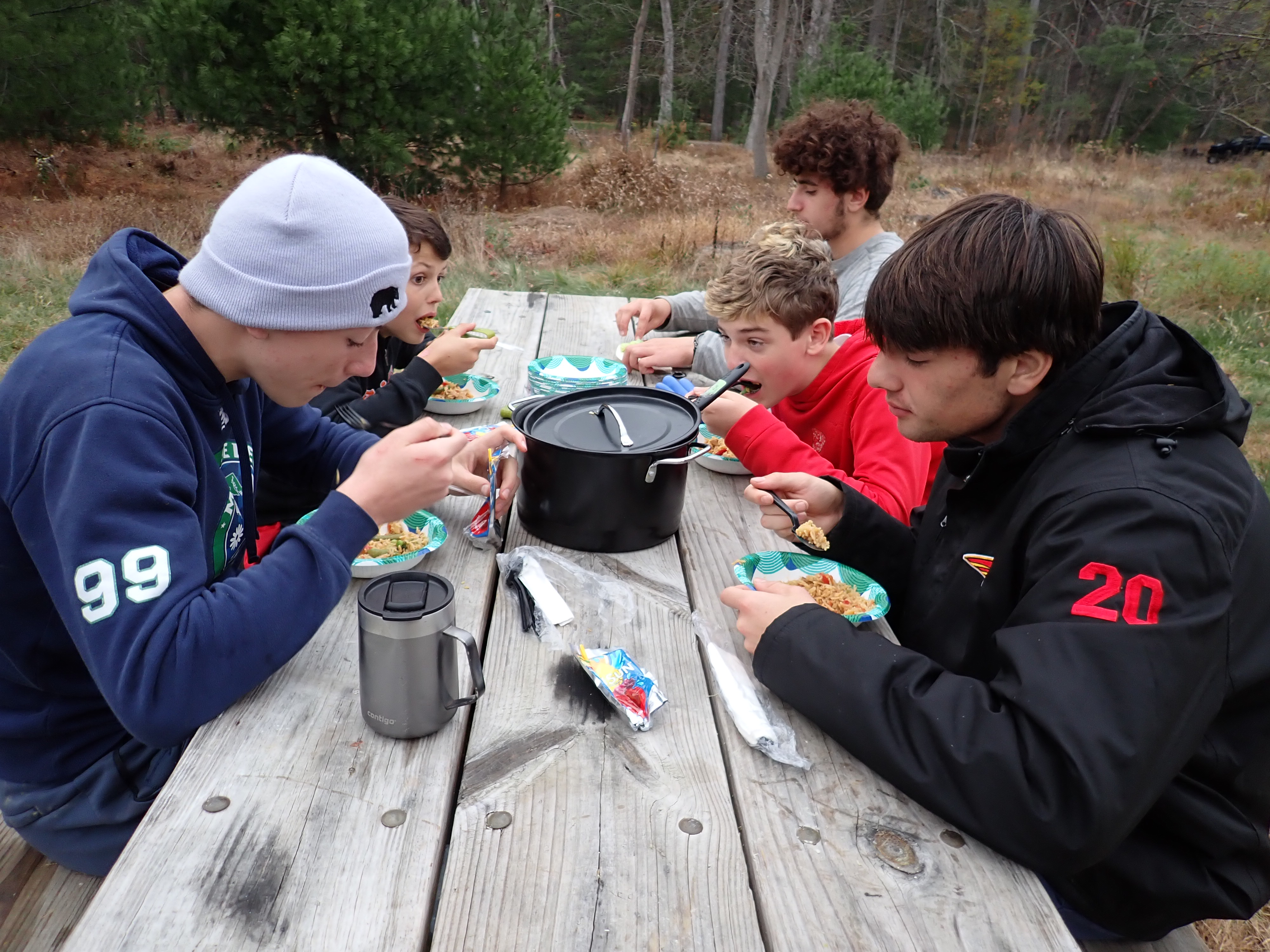 On 24-26 October 2025 we camped at Pine Grove Furnace State Park in Gardners, PA in sites A, B, and C.The weather both Saturday and Sunday fluctuated between overcast and partially sunny throughout the day. Night time lows for both days were predicted to be in the low 30's. We were surprised when the low on Saturday morning was 25°F and even more surprised on Sunday went it went down to 24°F. The main activities on Saturday were building shelters and then using them for capture the flag games.