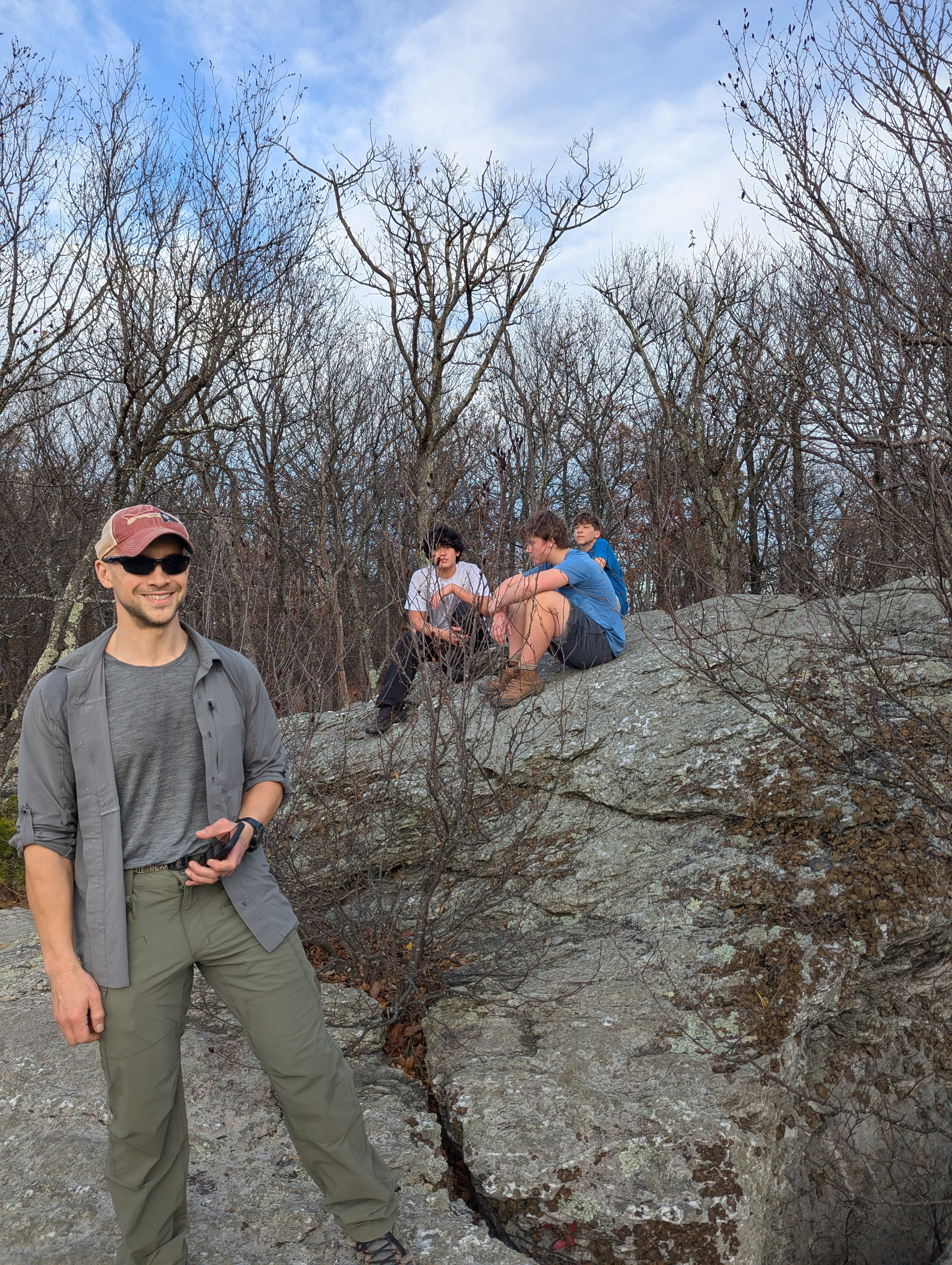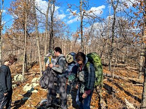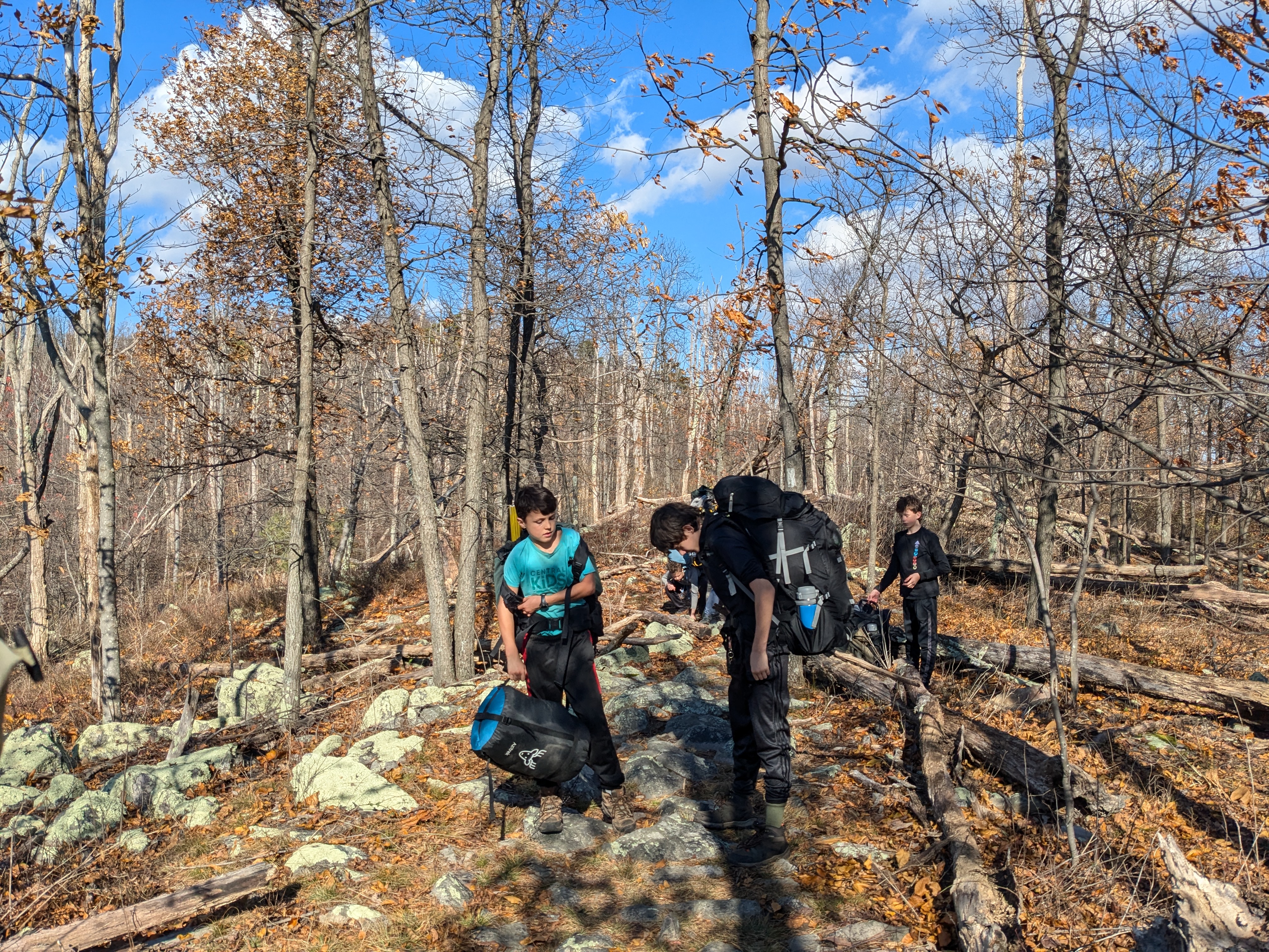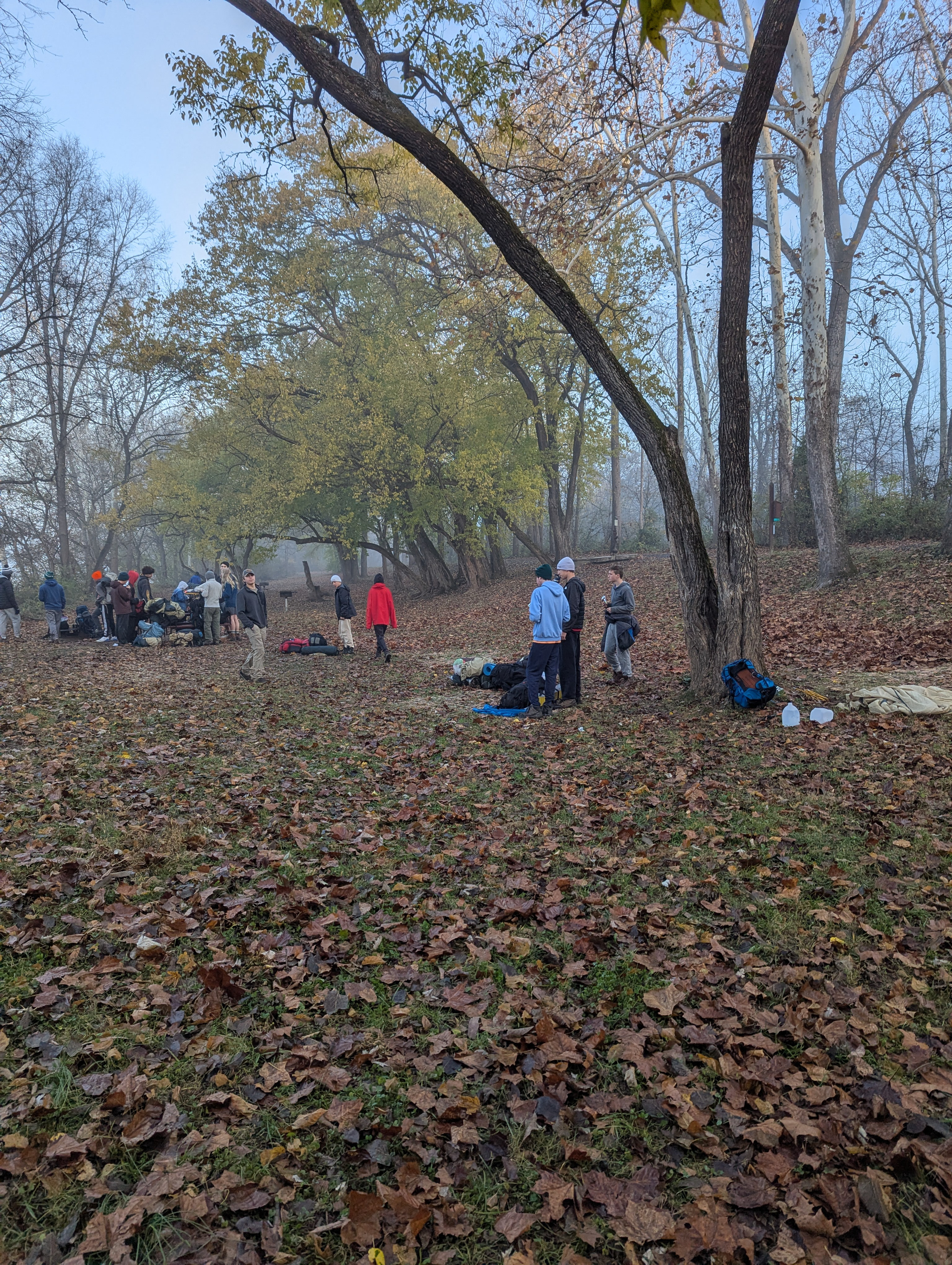 On 7-9 November 2025 we camped at the Antietam Creek Campground on Friday night. On Saturday we split into groups for a long backpack and a shorter one. The shorter hike, around 6 miles, started at Keys Gap. The longer hike, about 13 miles, started at the Harpers Ferry National Park parking lot. Both hike ended the day at the Blackburn Trail Center campground. We hiked about about 1.5 miles on Sunday to a location along the road where the vehicles pick up everyone.Saturday started out very foggy. It mostly cleared by the time we started hiking and was cool and comfortable for hiking. Both groups had enjoyable hikes with very few issues along the way. After dinner the group walked up to the ridge to enjoy the view in the dark.