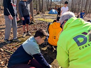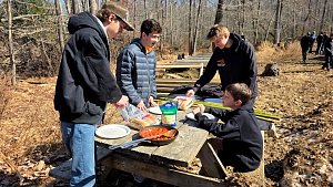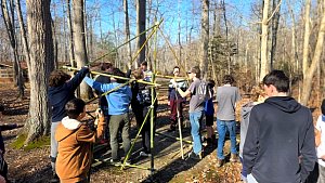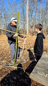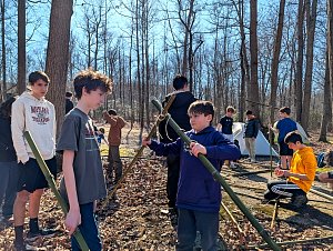 On 27 January - 1 March 2026 we camped at Camp at Rodney Scout Reservation, North East, MD. We stayed in Cabins Shawnee and Minsi and several adults tented. The eight adults who camped both nights and stayed in unheated accommodations earned 8 Texas Tough Points.The low temperature dropped to 25°F on Saturday with a high near 60°F. Sunday morning was warmer, 31°F.On Saturday morning some older scouts and adults taught the younger scouts how to make square, diagonal, tripod, and shear lashings. At the same time most of the older boys were practicing their lashing making various projects suing bamboo. After lunch we had some free time and time for advancement and PASS. Following that all the boys came together to lash a larger project out of bamboo and learned the importance of using triangle shapes in building project to prevent "racking".