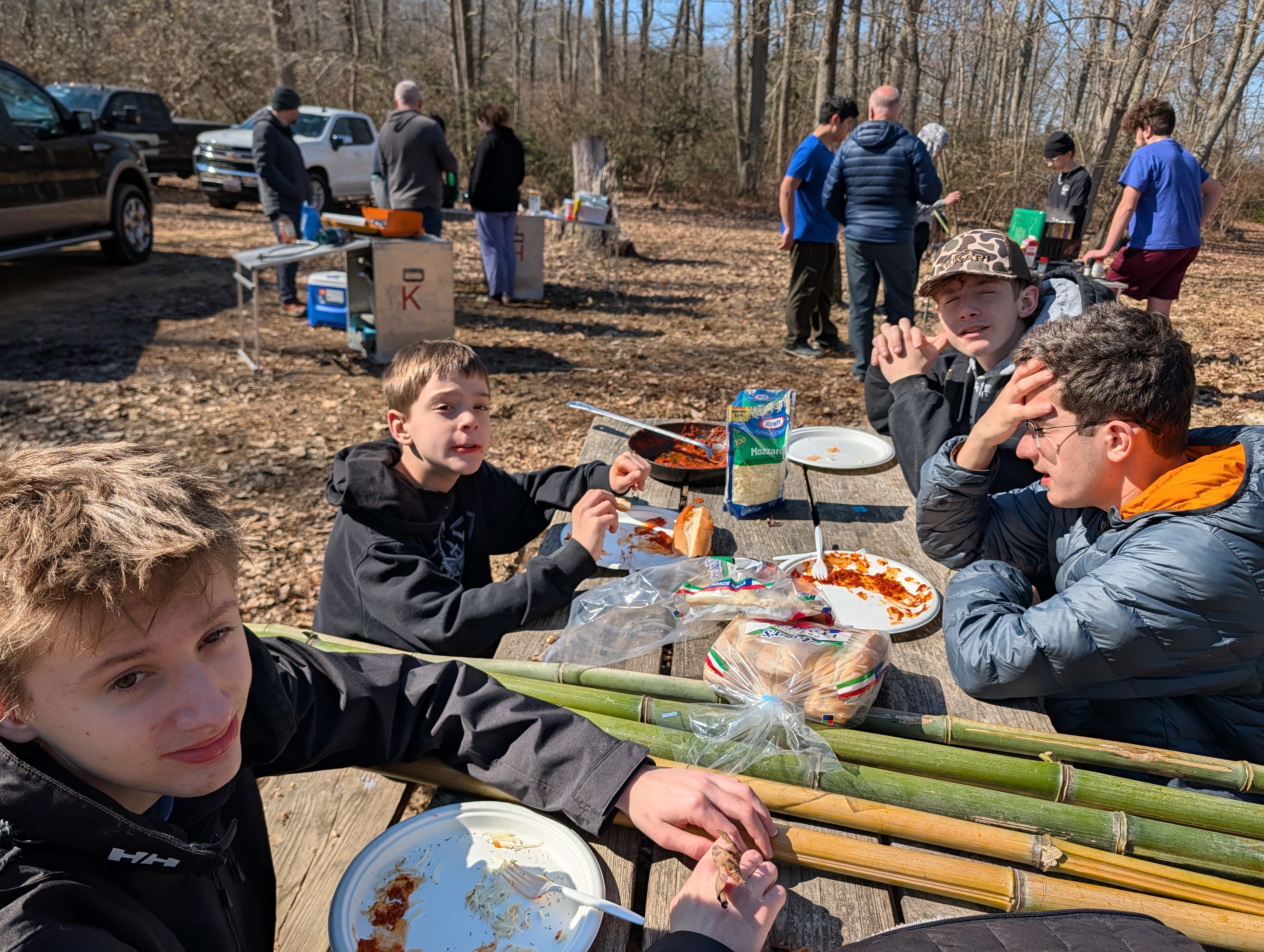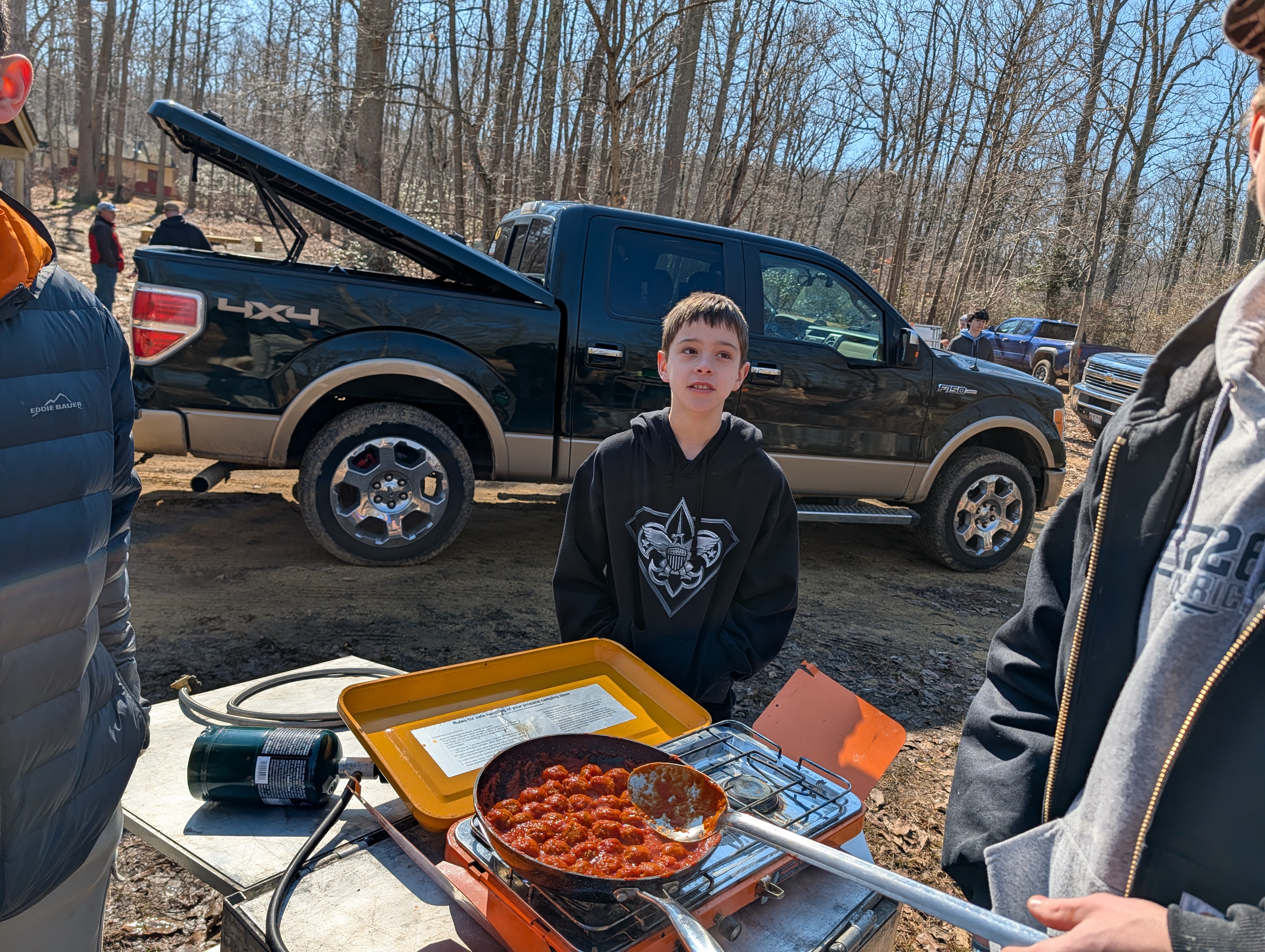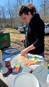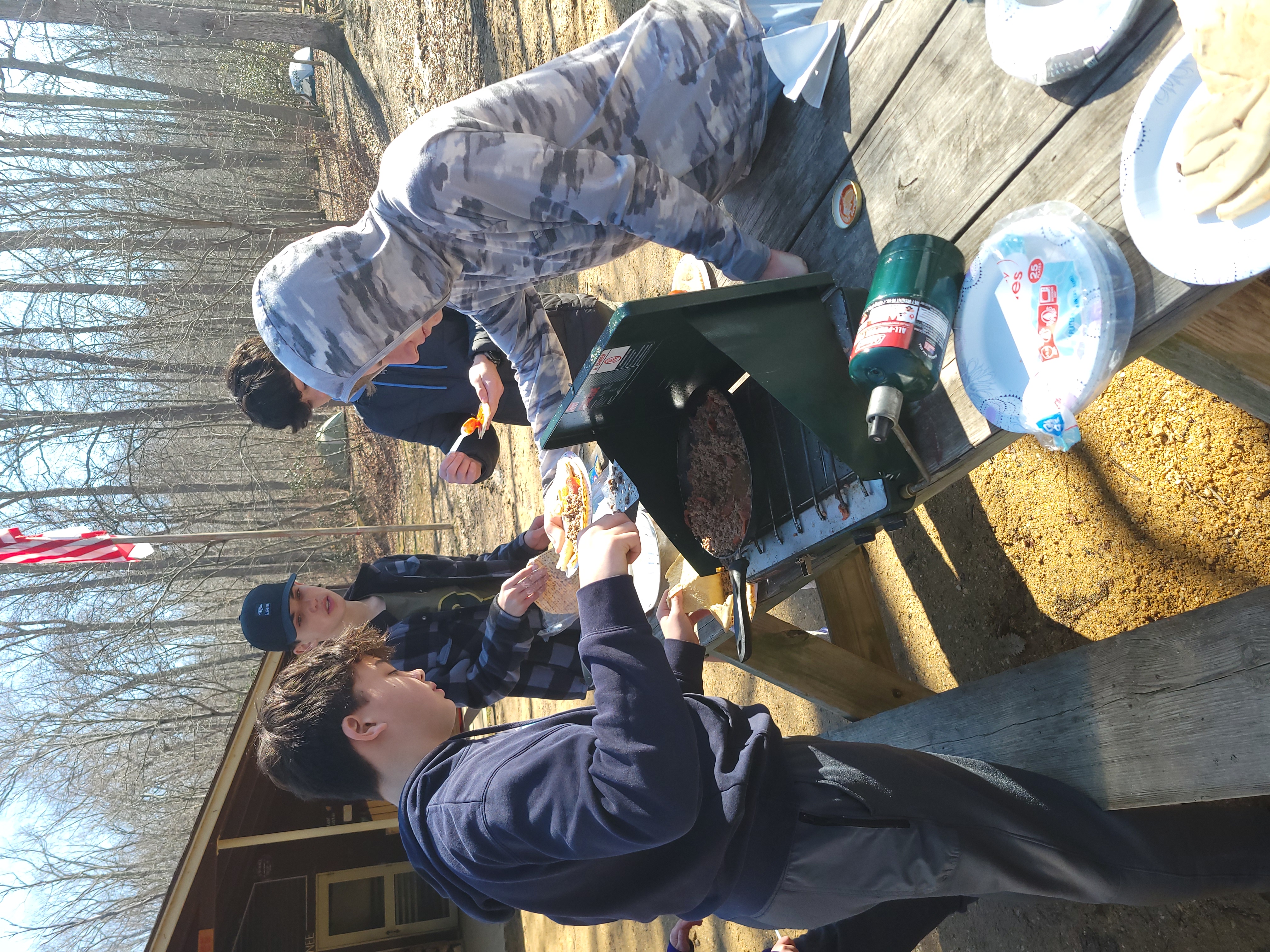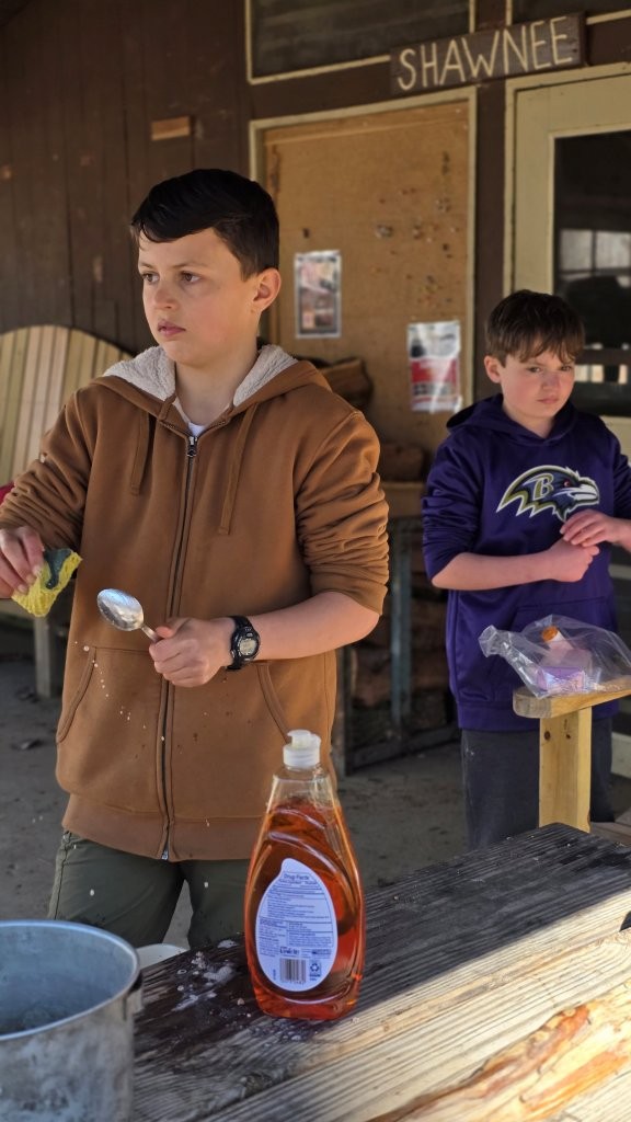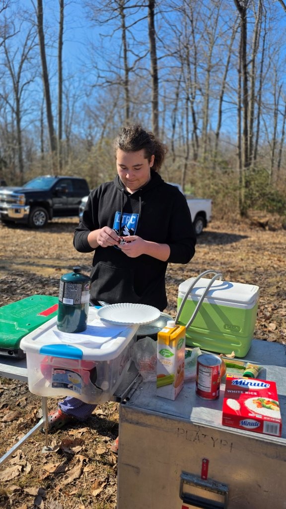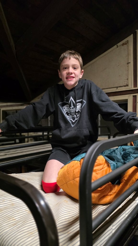 On 27 January - 1 March 2026 we camped at Camp at Rodney Scout Reservation, North East, MD. We stayed in Cabins Shawnee and Minsi and several adults tented. The eight adults who camped both nights and stayed in unheated accommodations earned 8 Texas Tough Points.The low temperature dropped to 25°F on Saturday with a high near 60°F. Sunday morning was warmer, 31°F.
