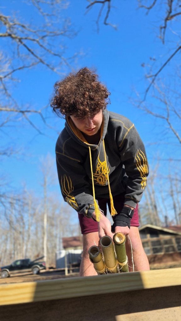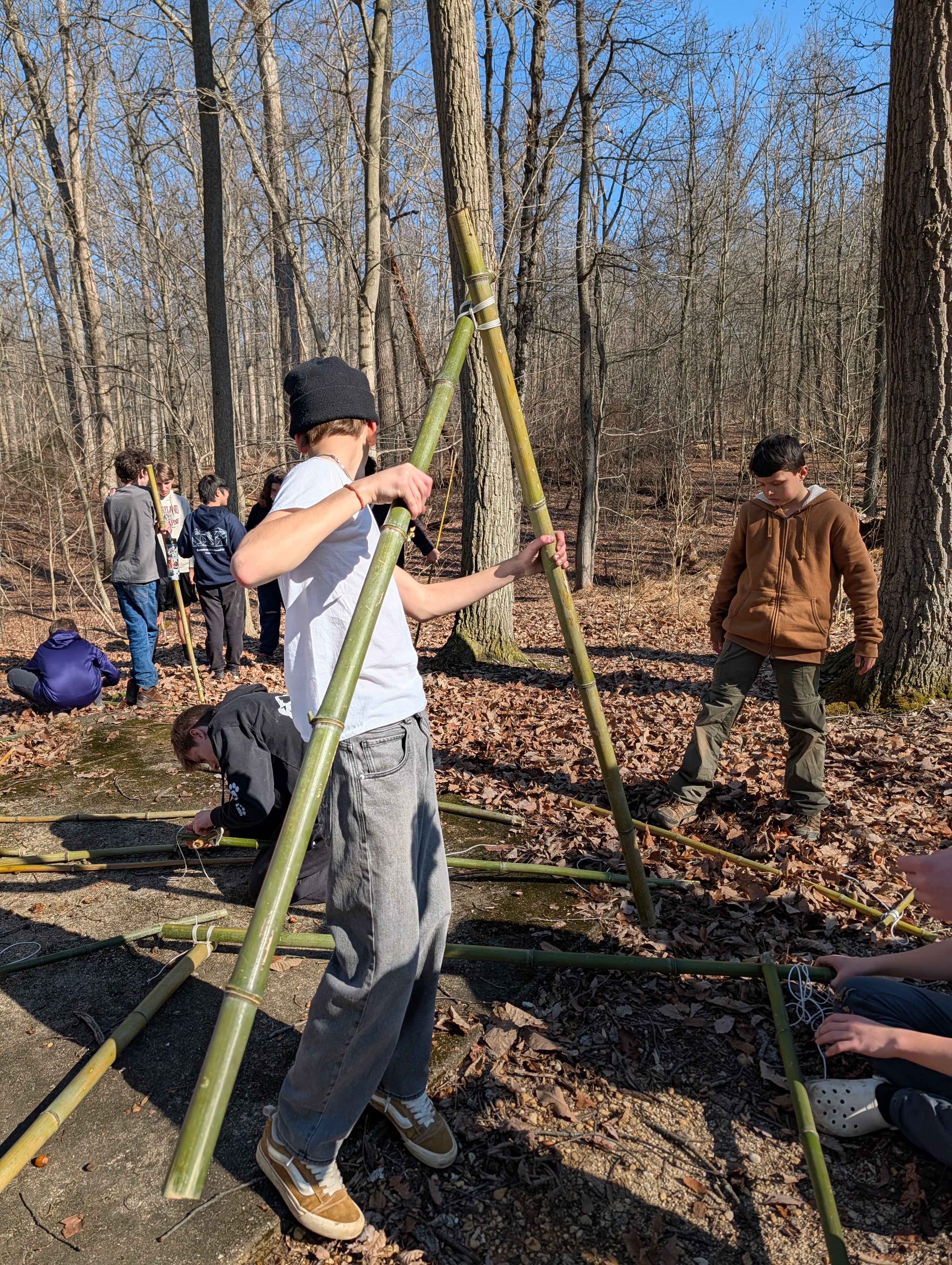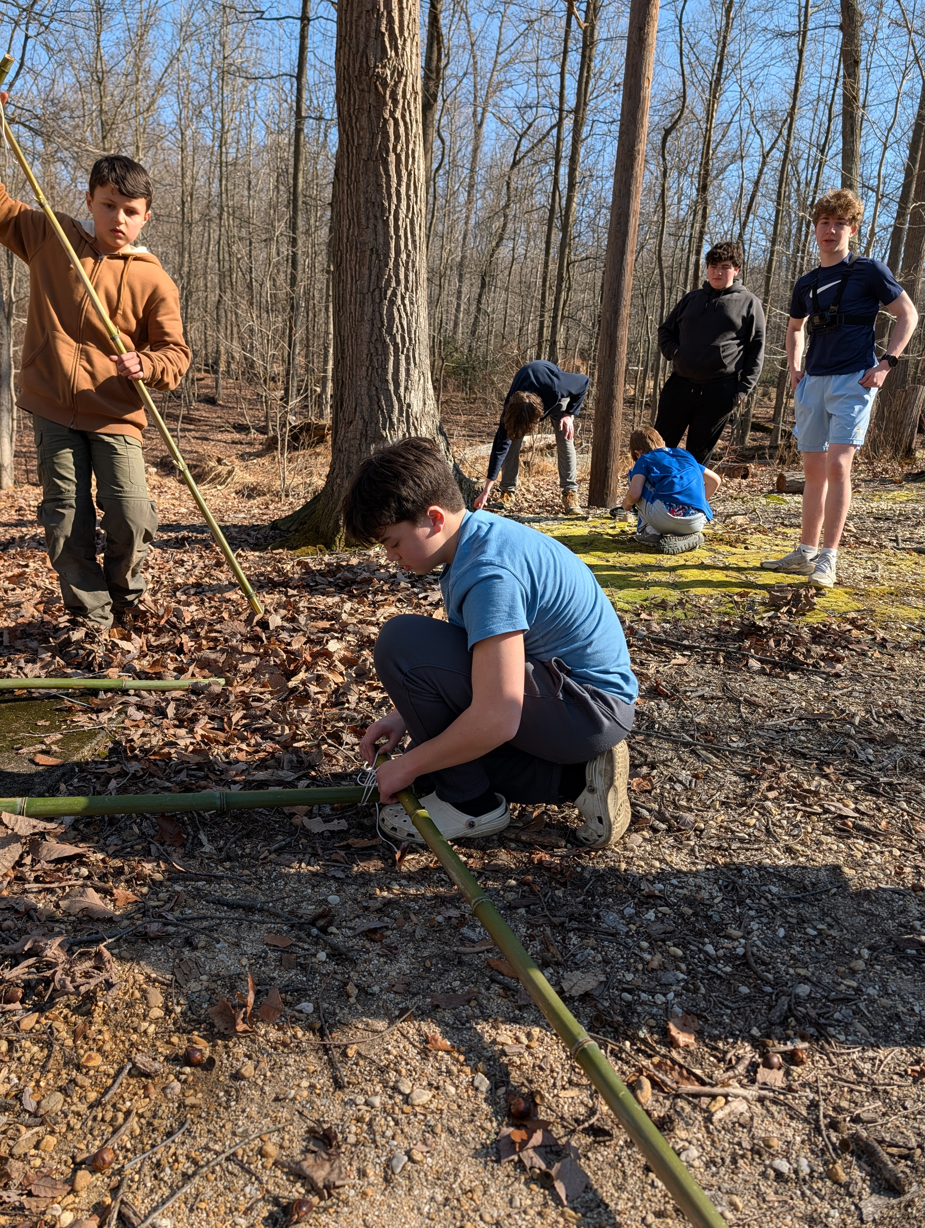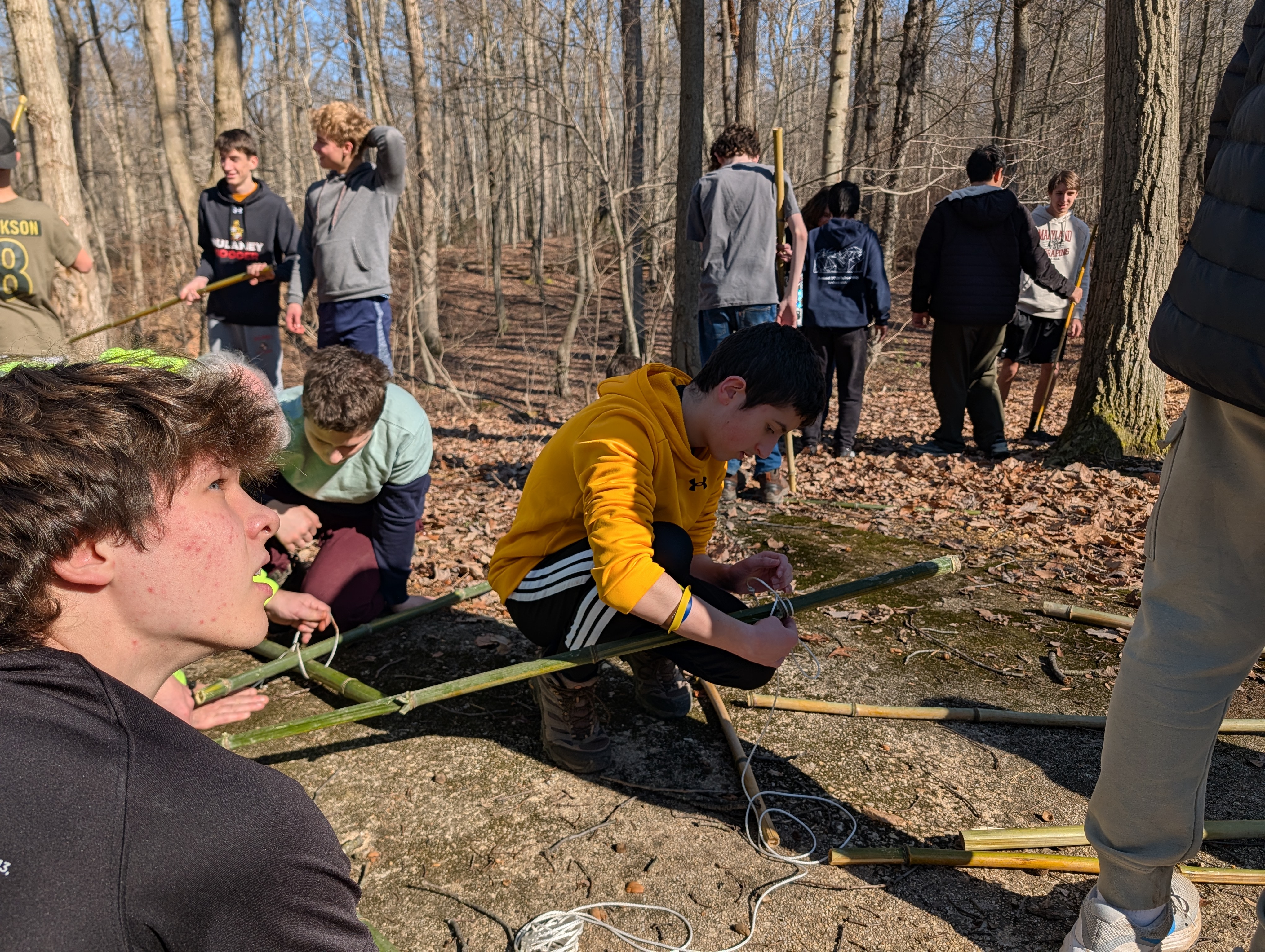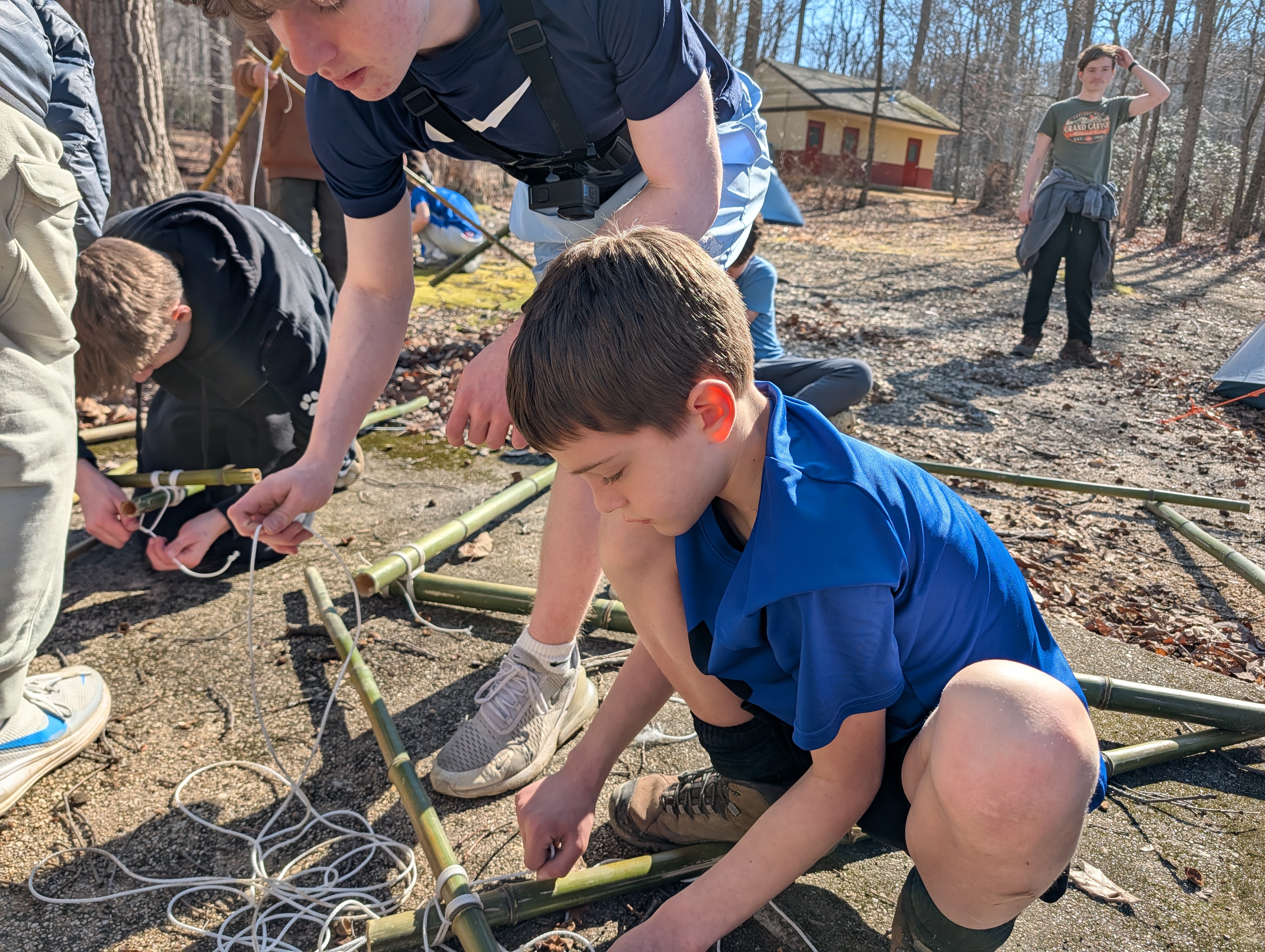On Saturday morning some older scouts and adults taught the younger scouts how to make square, diagonal, tripod, and shear lashings. At the same time most of the older boys were practicing their lashing making various projects suing bamboo. After lunch we had some free time and time for advancement and PASS. Following that all the boys came together to lash a larger project out of bamboo and learned the importance of using triangle shapes in building project to prevent "racking".