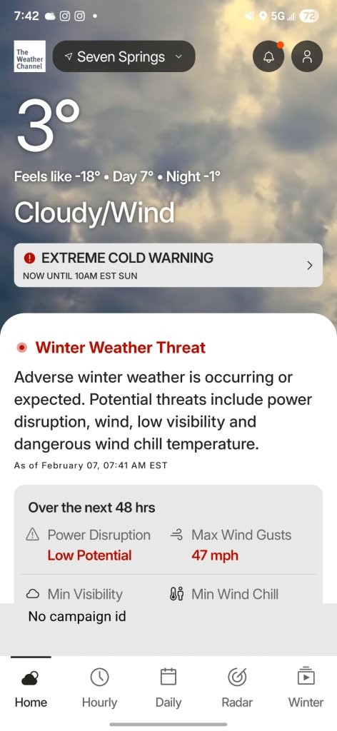 On 23-24 January 2026 we camped at Camp at Camp Spencer, Broad Creek, Whiteford, MD.The week before the camping trip the weather services were all calling for a major snow storm to start around 9 PM on Saturday. We didn't want to cancel the trip so we decided on Wednesday to shorten the trip to just Friday night and Saturday until after dinner. We stuck to the plan and had everyone back to the shed around 8:30 pm on Saturday. The snow started around 10 pm and snowed Saturday night and into Sunday. In the Cockeysville area it started as 6-8 inches of light snow. By Sunday morning it turned into sleet which accumulated to 2-4 inches. The overnight low was 8.1°F and it warmed only to 17°F on Saturday. The six adults who slept in unheated accommodations earned 24 Texas Tough Points for the weekend.