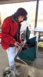 On 27-29 March we camped at Horseshoe Scout Reservation, Rising Sun, MD. We tented in the Campcraft Area and the Scouts cooked under the Goodman Pavilion. We also use the Trailblazers site for program. Everyone who camped both nights earned 10 Texas Tough Points.The low temperature dropped to 30°F on Saturday with a high near 50°F. Sunday morning was colder, 24°F.