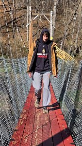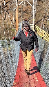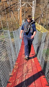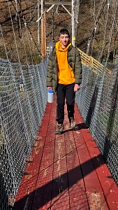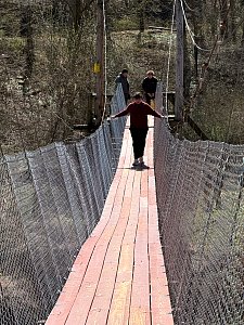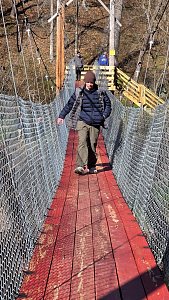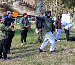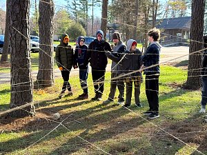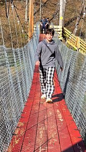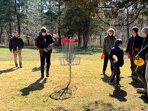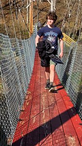 On Saturday morning the SPL split the 20 Scouts in attendance into two groups for competitive events including traversing a spider web and a fire building competition. After lunch we spent time on advancement and PASS. We then hike about 0.6 miles to new renovated suspension bridge and walked over to Camp Ware. Some Scouts and Adults played Frisbee Golf while other scouts play the kickball version of baseball.
